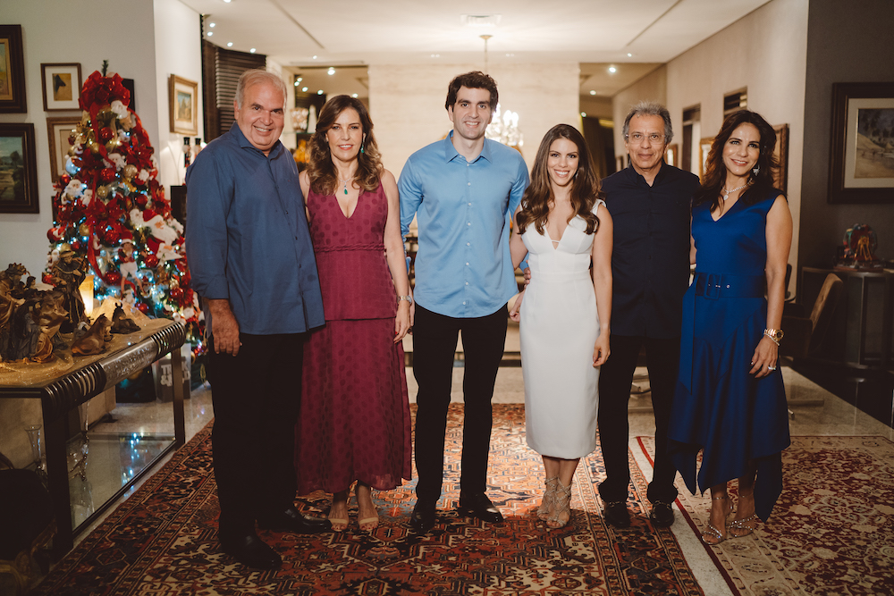 Como reza a tradição, Manuela Rolim e Raphael Nogueira Diogo, herdeiros de Sandra e Eduardo Rolim e de Rosele e Haroldo Diogo, Manuela Rolim e Raphael Nogueira Diogo oficializaram seu noivado com um chic e intimista jantar no refinado endereço dos pais dela, nas Dunas. Sob a batuta de Mafrense Eventos, a alinhada recepção contou com decoração de Dito Machado. O cardápio ficou a cargo do chef Rafa Sudatti. No quesito música, a animação ficou por conta das batidas do deejay Lucas Markis, que dividiu o palco com o cantor Diego Vaz. Detalhe: Manuela foi pedida em casamento no dia 6 de novembro e o casório está marcado para este ano.