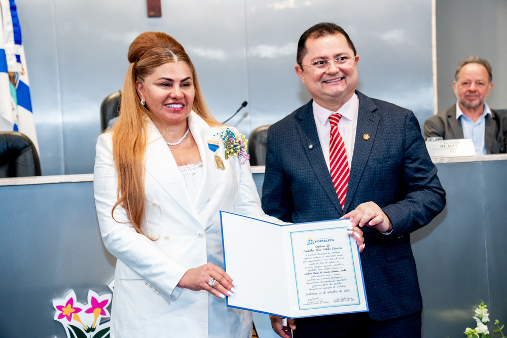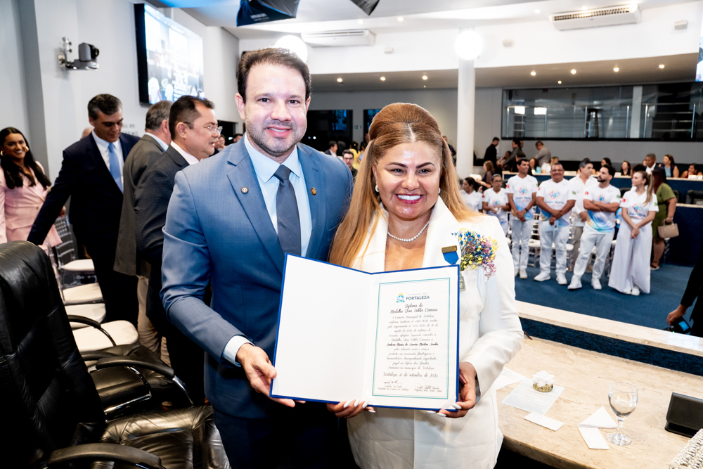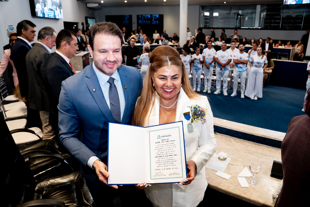 Em tarde de celebração, a Câmara Municipal de Fortaleza prestou homenagem à benemérita Maria Sooder, concedendo-lhe a Medalha Dom Helder Câmara. A honraria, proposta pelo vereador Aglaylson Figueredo e aprovada pelo presidente Leo Couto, reverencia a trajetória da fundadora e presidente da Fundação Sooder Maria. Reconhecida por seu trabalho em prol da dignidade humana e do apoio a comunidades vulneráveis, Maria Sooder atualmente promove ações sociais e humanitárias em diversos países. A sessão solene, realizada na segunda-feira (15), no Plenário Fausto Arruda, reuniu autoridades e admiradores para celebrar uma trajetória marcada pelo altruísmo e compromisso com o bem comum.