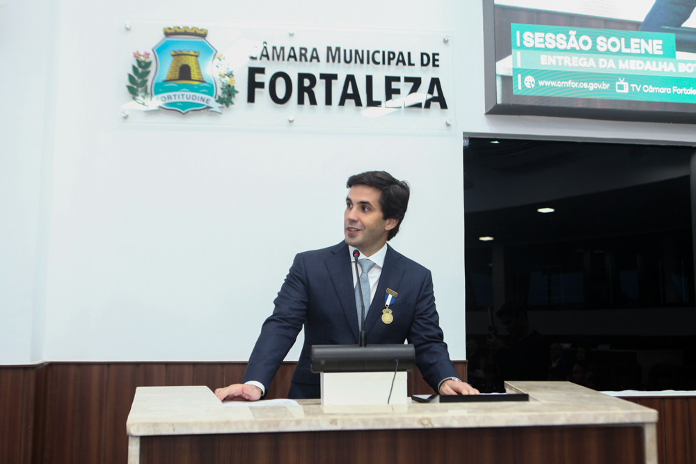O empresário Netinho Bayde recebeu a Medalha Boticário Ferreira, na noite de quinta-feira (3), em solenidade realizada no Plenário Fausto Arruda, na Câmara Municipal de Fortaleza. A entrega da maior honraria concedida pelo Legislativo da cidade foi conduzida pelo vereador Marcelo Tchela, e proposta pelo vereador Emanuel Acrízio.