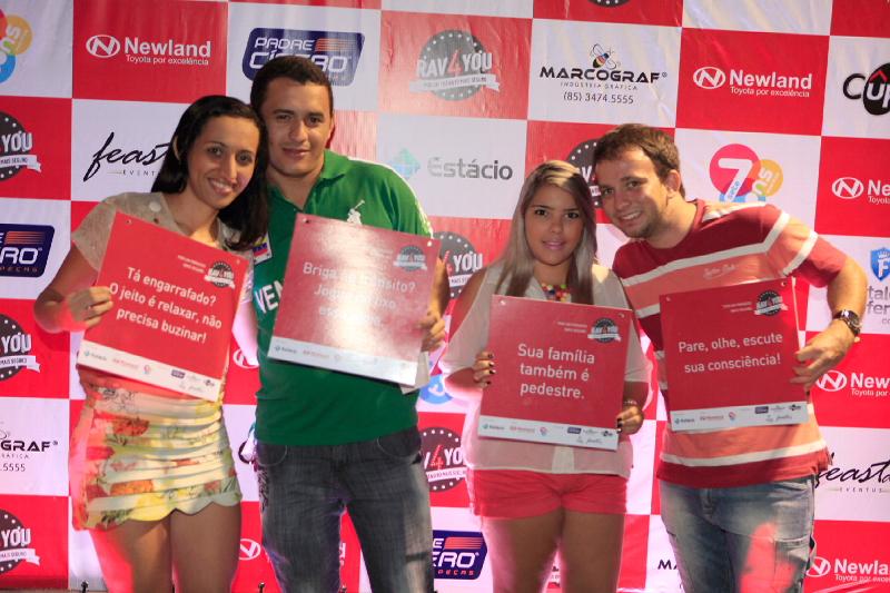 Com o garoto propaganda RAV4 2013 da Toyota, Newland, e a ex-miss Ceará, Anastácia Duarte, os estudantes de Publicidade do Centro Universitário Estácio do Ceará pararam o trânsito da parte externa do Fiteiro da Praia, na noite de ontem. Mas, calma, deste congestionamento ninguém ficou chateado. Afinal, a ideia era promover uma campanha por um trânsito mais consciente, com gentilezas e educação. Quem passou pelo RAV4YOU, também se encantou com o veículo e, ainda, se contagiou com os hits tocados pelo DJ Carlos Francisco. Vamos conferir?!