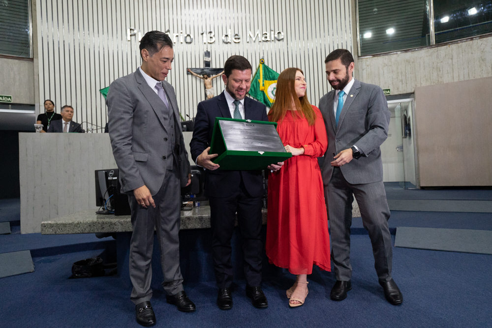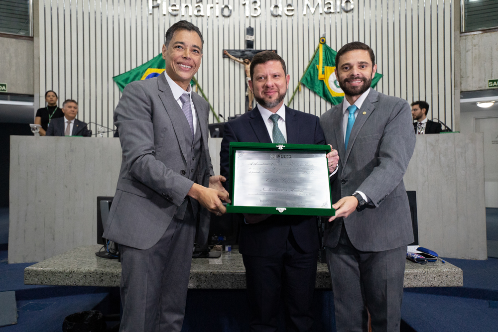 O secretário-chefe da Casa Civil do Estado do Rio de Janeiro, Nicola Miccione, foi agraciado com o título de Cidadão Honorário do Ceará, durante sessão solene presidida pelo deputado Júlio César Filho, no Plenário 13 de Maio da Assembleia Legislativa do Estado do Ceará (Alece), por sua atuação em prol do desenvolvimento do Estado. A propositura inicial foi realizada pelo então parlamentar Leonardo Araújo e foi aprovada por unanimidade, sendo deferida pelo presidente da Alece, Evandro Leitão. Na solenidade, destaque para as presenças de dois ex-presidente do Banco do Nordeste (BNB) – Roberto Smith e Romildo Rolim, representantes do Poder Judiciário como o juiz federal Augustino Chaves e os procuradores de Justiça do Ceará José Raimundo Pinheiro de Freitas e Anastácio Marinho, além de advogados, parlamentares, empresários e amigos do homenageado. Sua esposa, Tatiana Binato Miccione, o acompanhou na cerimônia e demonstrava muito orgulho com a homenagem recebida por Nicola Miccione. Confira os flashes!!!