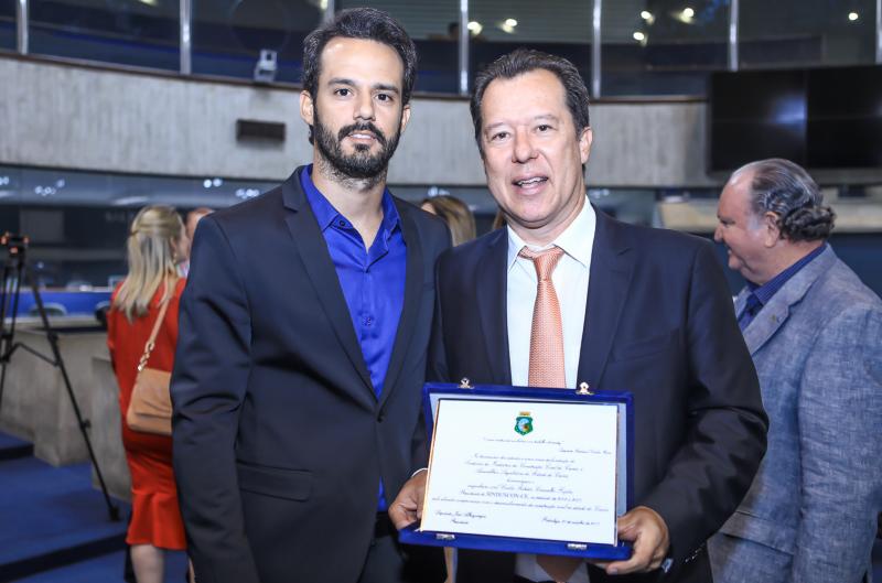 Em noite das mais prestigiadas, reunindo grandes nomes do empresariado da construção civil do nosso Estado, o Sinduscon-CE, presidido por André Montenegro de Holanda, ganhou homenagem da Assembleia Legislativa em comemoração aos seus 75 anos, proposta pelo deputado estadual Carlos Matos. A sessão solene homenageou ex-presidentes do Sinduscon-CE no período de 1971 a 2013. Receberam placas de homenagem o presidente da FIEC, Beto Studart; os engenheiros civis Rommel de Castro Barbosa, Pio Rodrigues Neto, Francisco de Assis Machado Neto, José Martins Soriano Aderaldo, Crisanto Ferreira de Almeida, Carlos Roberto Carvalho Fujita, Roberto Sérgio Oliveira Ferreira e André Montenegro de Holanda. Foram homenageados, in memoriam, Francisco José Chaves Jatahy, Joacy Demétrio de Souza e Francisco de Carvalho Martins.