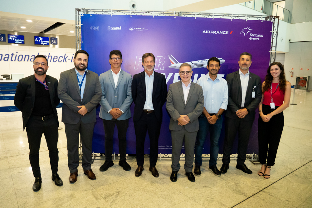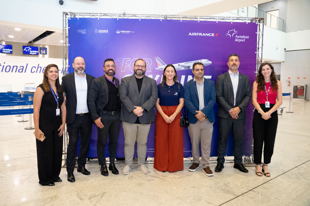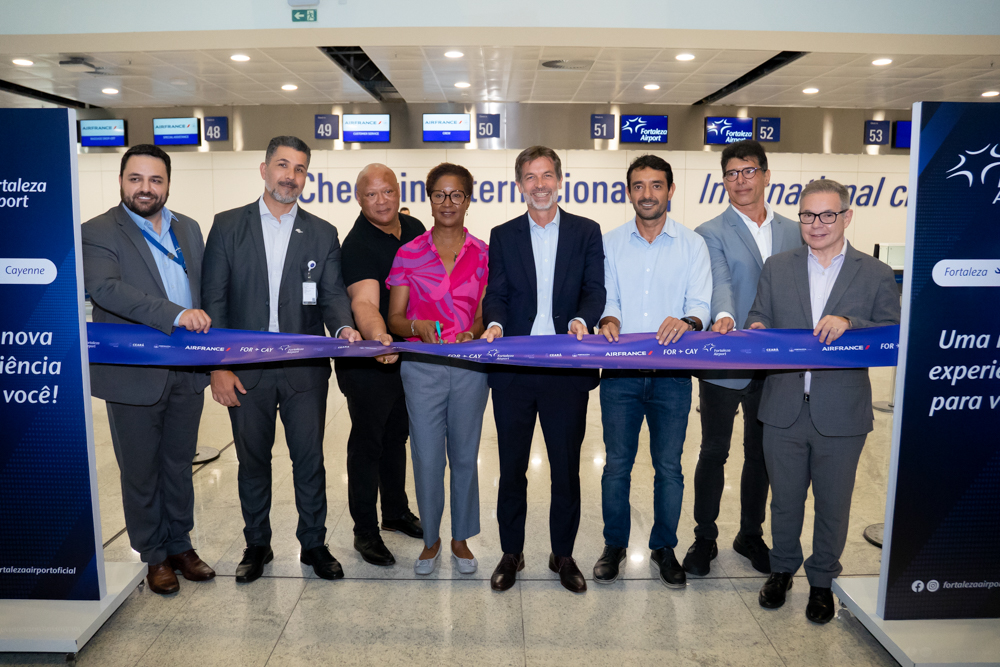 A Air France inaugurou nova rota internacional, desta vez ligando Fortaleza a Caiena, capital da Guiana Francesa, na quarta-feira (16), em solenidade no Aeroporto de Fortaleza. A operação será semanal, com partida de Caiena às terças-feiras, às 13h (horário local), e retorno da capital cearense às quartas-feiras, às 15h. Compareceram à cerimônia de lançamento Edgar Nogueira, COO da Fraport Brasil; Manuel Flahault, diretor-geral da Air France na América do Sul; Eduardo Bismarck, secretário do Turismo do Ceará; e o cônsul francês em Recife, Serge Gas. O novo voo, além de aproximar Fortaleza do Caribe francês — com conexão direta a destinos como Martinica e Guadalupe — reforça o protagonismo da capital como hub aéreo internacional e deve impulsionar tanto o turismo quanto o comércio entre as regiões.