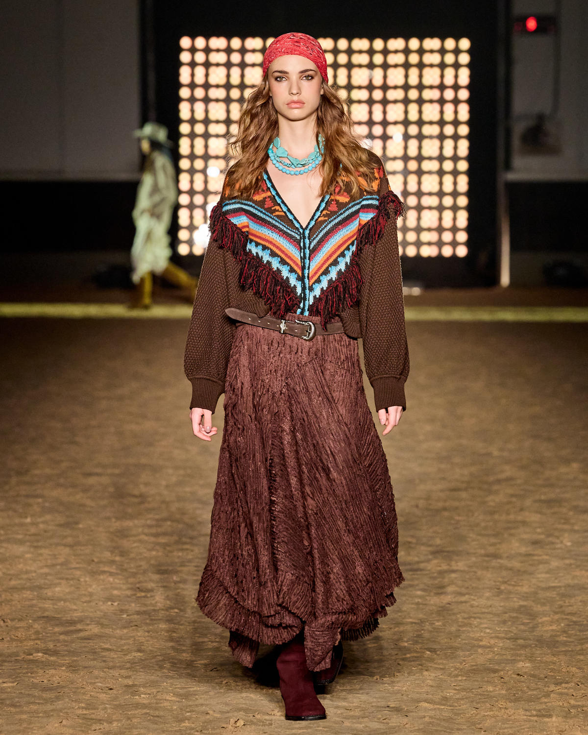 A NV, marca criada por Nati Vozza, realizou um desfile imersivo na terça-feira (11), na Hípica Santo Amaro, em São Paulo, para apresentar sua coleção Fall Winter 25. Batizado de Voyager, o evento marcou um novo capítulo para a marca, misturando referências do Western Boho com alfaiataria moderna, jacquard, couro e bordados.