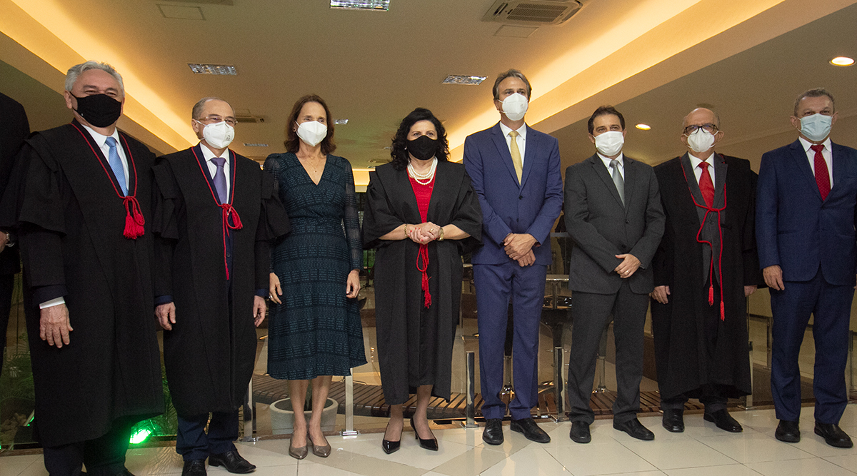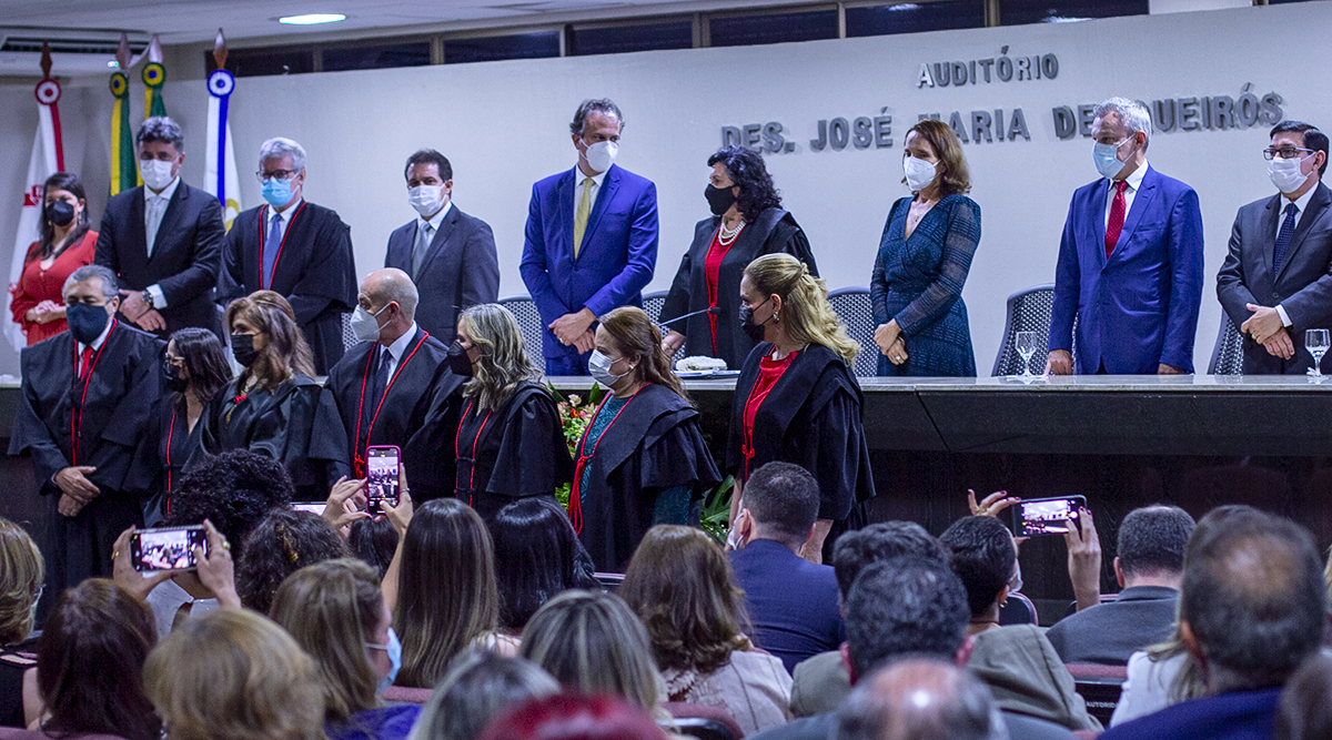 Pela primeira vez na história do Judiciário estadual, em seus 148 anos de existência, o Tribunal de Justiça do Ceará (TJCE) empossou em uma mesma sessão, cinco mulheres no cargo de desembargadora. A solenidade, conduzida pela presidente da corte, Maria Nailde Pinheiro Nogueira, ocorreu nesta quinta-feira (24/03), reunindo sobrenomes poderosos da política e do mundo jurídico na Escola Superior da Magistratura do Ceará (Esmec). Na ocasião, foram empossadas por merecimento Rosilene Ferreira Facundo, Jane Ruth Maia de Queiroga, Sílvia Soares de Sá Nóbrega e Andréa Mendes Bezerra, além de Maria Ilna Lima de Castro, escolhida por antiguidade. Também eleitos por antiguidade, os juízes Carlos Augusto Gomes Correia e José Evandro Nogueira Lima Filho foram empossados desembargadores na mesma sessão. Os sete são juízes de carreira. Com a posse, o índice de mulheres na Corte do Tribunal passou para 42%.