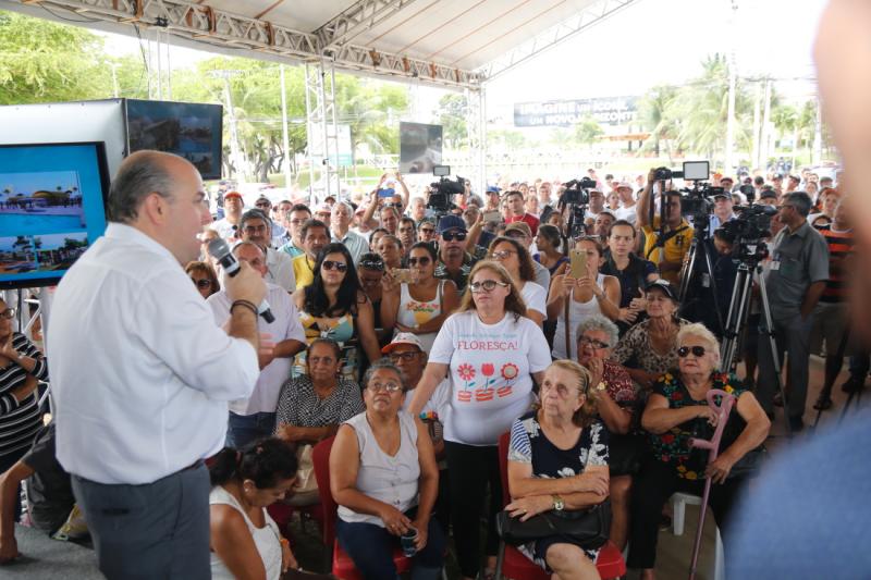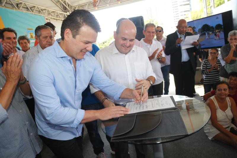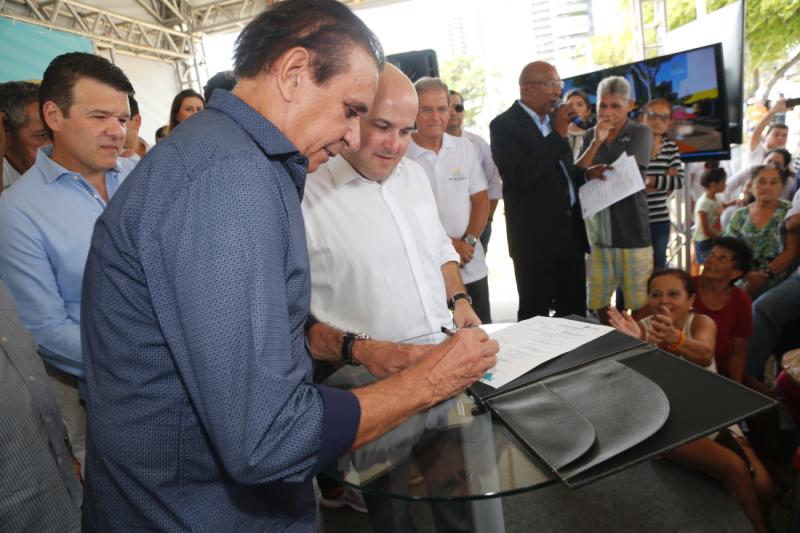 Prefeito de Fortaleza, Roberto Cláudio assinou, na manhã de hoje (27), a ordem de serviço para o início das obras da Nova Avenida Beira Mar. O conjunto de intervenções prevê uma série de melhorias urbanísticas e de mobilidade ao longo da via, além da construção de um novo calçadão, no trecho entre a Praia do Meireles e a Enseada do Mucuripe. A requalificação da Avenida Beira Mar será executada pela Secretaria Municipal da Infraestrutura. Orçadas em aproximadamente R$ 40 milhões, as obras devem durar cerca de 24 meses, começando em agosto, e a região passará a contar com espaços para convivência com caramanchões, academias, banheiros, parque infantil, quadras de vôlei de praia, pista de skate, anfiteatro, pista de hockey, ciclovia, pista de cooper com 2,6 km de extensão, além de um posto da Casa do Turista e prédio administrativo. Aos cliques