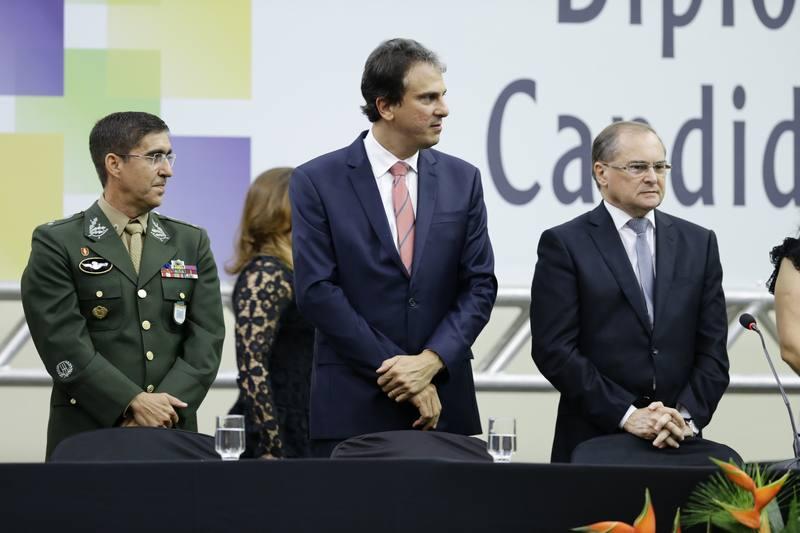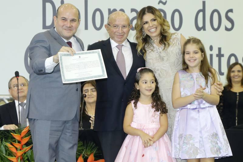 O prefeito reeleito de Fortaleza, Roberto Cláudio, juntamente com seu vice, Moroni e os 43 vereadores eleitos foram diplomados nesta segunda-feira, em cerimônia realizada no Centro de Eventos do Ceará e presidida pela juíza Jane Ruth Maia, da Junta Eleitoral. “É com muita honra que sou diplomado novamente como Prefeito de Fortaleza. Irei começar o nosso novo mandato com o mesmo ânimo, entusiasmo e dedicação. Mas desta vez, com mais experiência e a certeza de que o trabalho sério precisa continuar”, afirmou Roberto Cláudio na solenidade. Como prioridade para o segundo mandato, RC falou em priorizar saúde e segurança, além de medidas para amenizar os efeitos da crise econômica. O vereador Salmito Filho, também recebeu diploma para mais um mandato, onde também continuará como presidente da Câmara Municipal de Fortaleza. A eleição da nova mesa diretora da CMF será durante a posse no próximo dia 1 de janeiro. Confira os cliques!