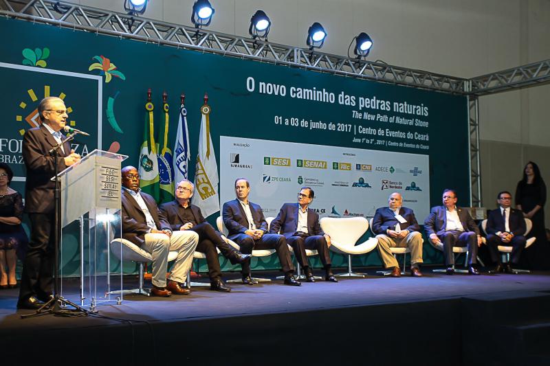 Em parceria com a Fiec, o presidente do Simagran-CE, Carlos Rubens Alencar, realiza a terceira edição da Fortaleza Brazil Stone Fair. Superprestigiada, a abertura da exposição, que já faz parte do calendário mundial de eventos relacionados a rochas ornamentais, contou com a presença de Robson Braga de Andrade, Presidente da CNI e do secretário do Desenvolvimento Econômico do Estado, Cesar Ribero, além do presidente da Fiec, Beto Studart, no Centro de Eventos do Ceará.
