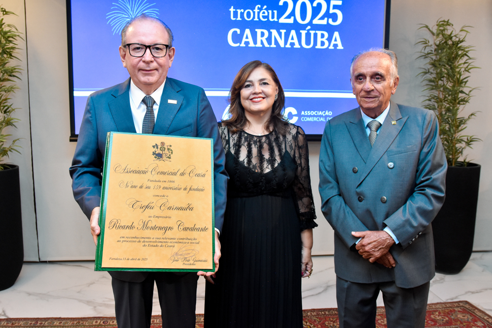 A Associação Comercial do Ceará (ACC) reuniu empresários, autoridades e representantes da classe produtiva para homenagear o presidente da Federação das Indústrias do Estado do Ceará (FIEC), Ricardo Cavalcante, com a entrega do Troféu Carnaúba 2025. A solenidade aconteceu na noite de quinta-feira (15), no terraço da Casa da Indústria, em Fortaleza, e marcou também os 159 anos da ACC. Conduzida por João Porto Guimarães, presidente da entidade, a cerimônia destacou a trajetória de Ricardo Cavalcante à frente do setor industrial cearense, reafirmando seu papel estratégico no desenvolvimento econômico do Estado.