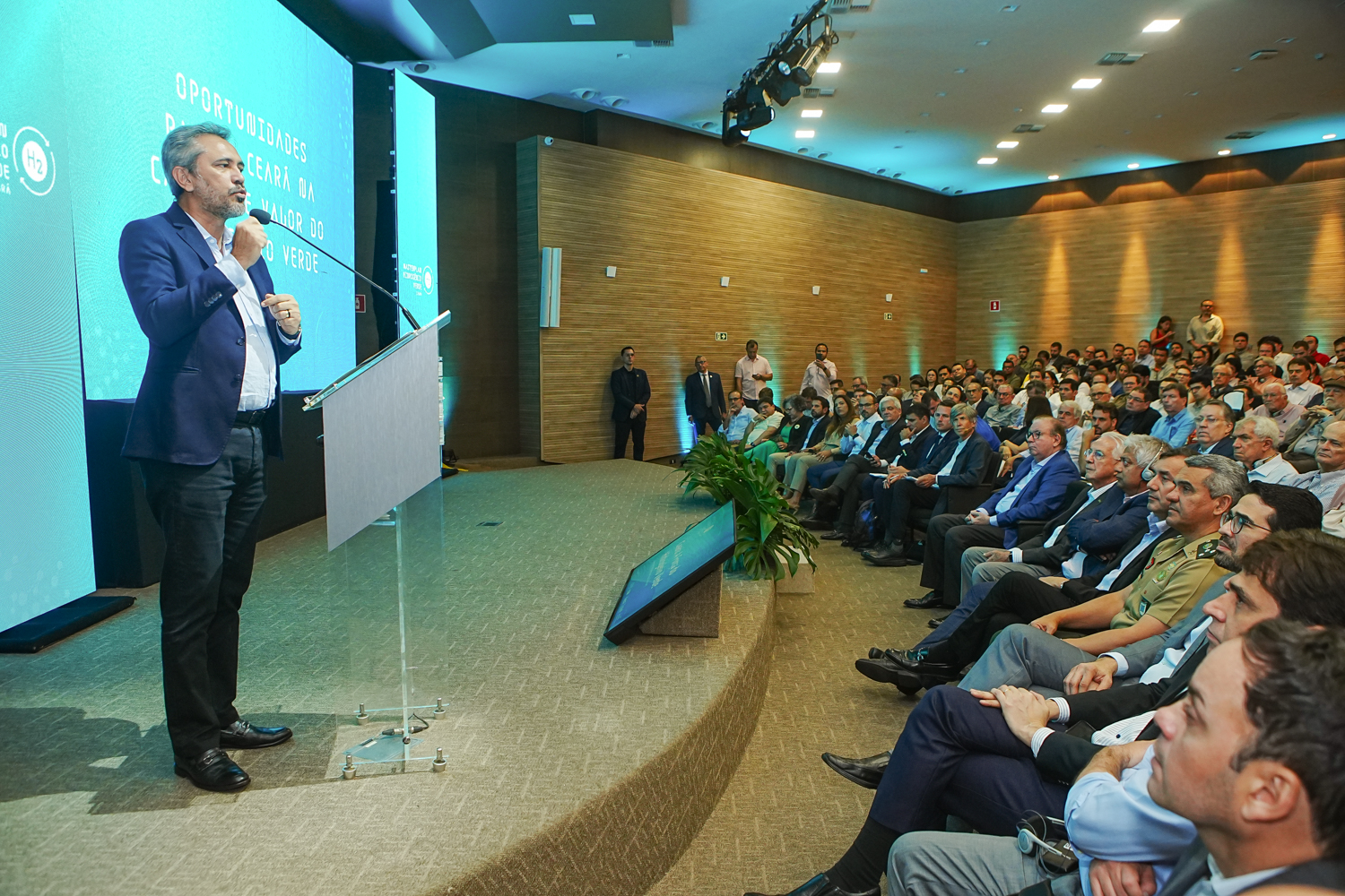 O auditório da Federação das Indústrias do Estado do Ceará (FIEC) reuniu empresários e autoridades para a apresentação dos estudos do Masterplan do hub de hidrogênio verde, conduzido pelo IXL Center, de Boston (EUA). A pesquisa, com colaboração de professores de Harvard e do MIT, prevê uma transformação econômica significativa no Ceará. Ricardo Cavalcante, presidente da FIEC, destacou a necessidade de qualificação da mão de obra para atender à demanda por empregos de alta qualidade. Hitendra Patel, CEO do IXL Center, apresentou o estudo, mostrando o potencial do Ceará para liderar a produção de hidrogênio verde devido aos seus recursos naturais. O governador Elmano de Freitas reforçou o compromisso do governo estadual e destacou a colaboração entre governo, indústria e academia como um diferencial do Ceará. Com investimentos bilionários e a aprovação do marco regulatório do H2V pelo Senado, o hub de hdrogênio verde no Pecém promete criar até 12 mil empregos diretos e qualificados, impulsionando uma nova era de desenvolvimento para o Ceará. Confira nossa cobertura!