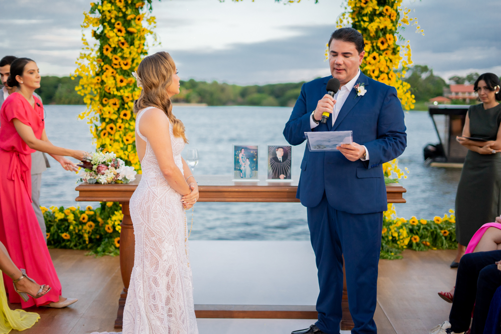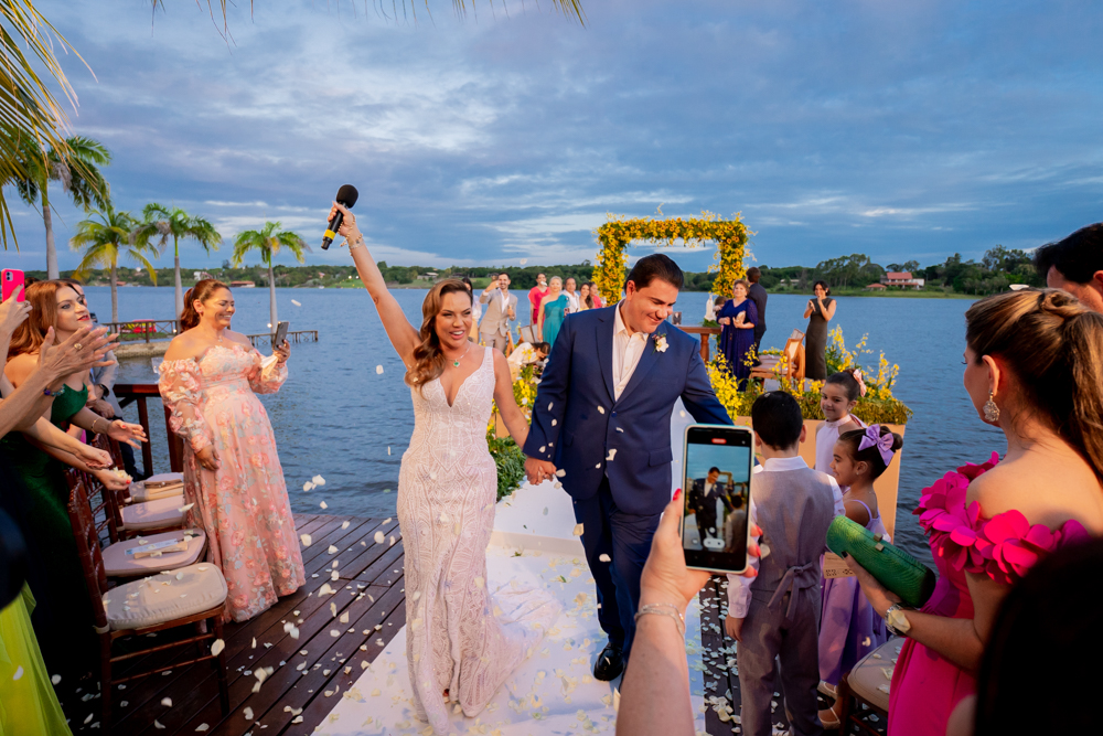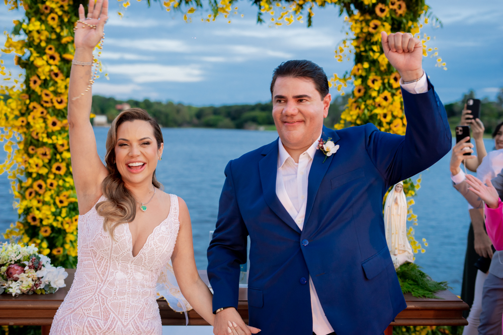 Risângela e Rannyere dizem sim em casamento mágico na Lagoa do Uruaú
