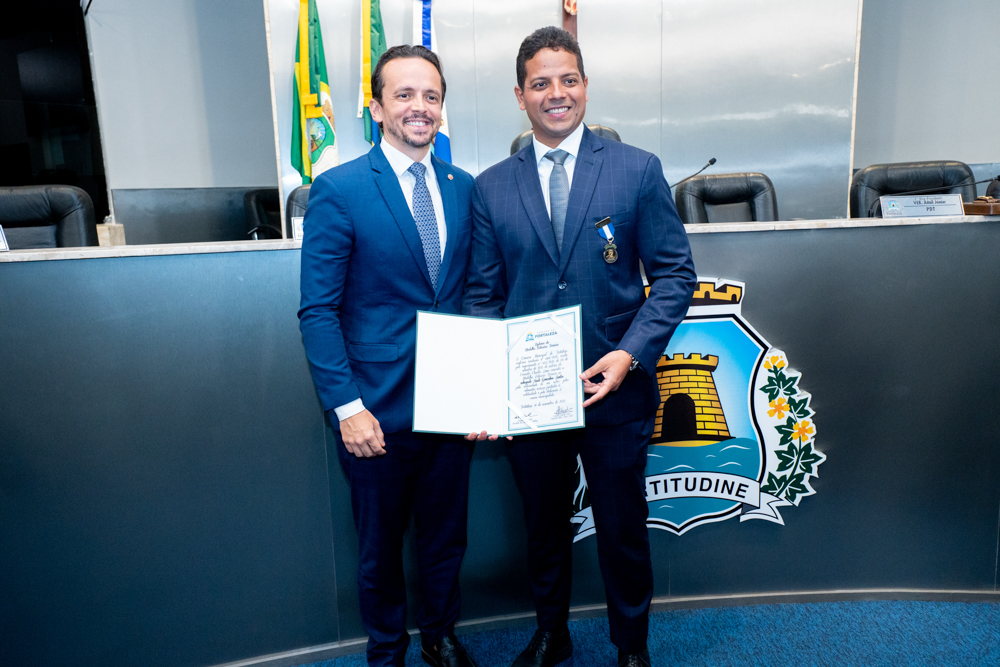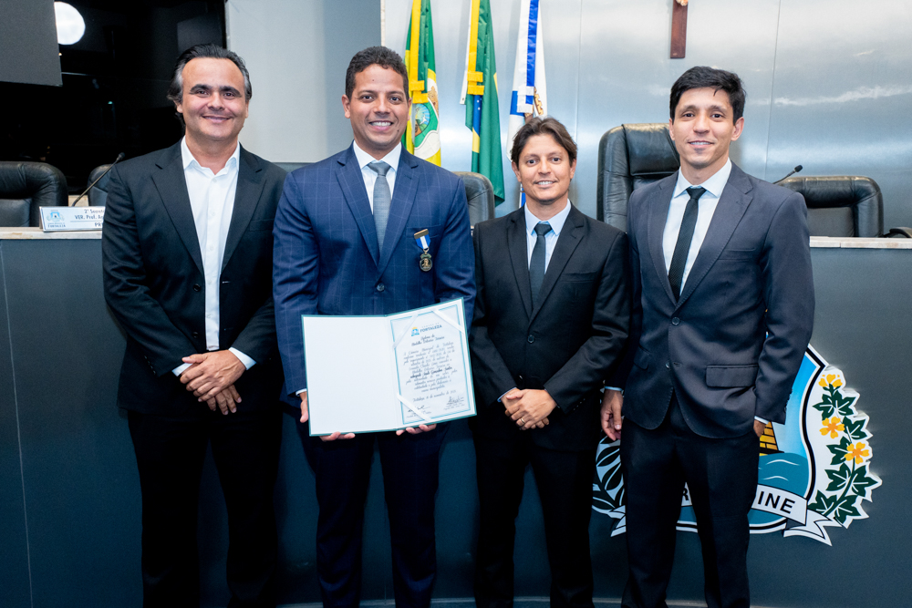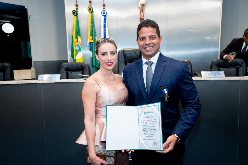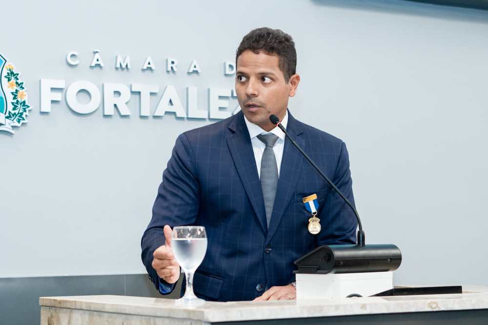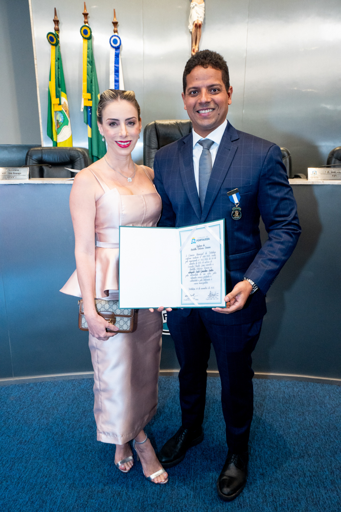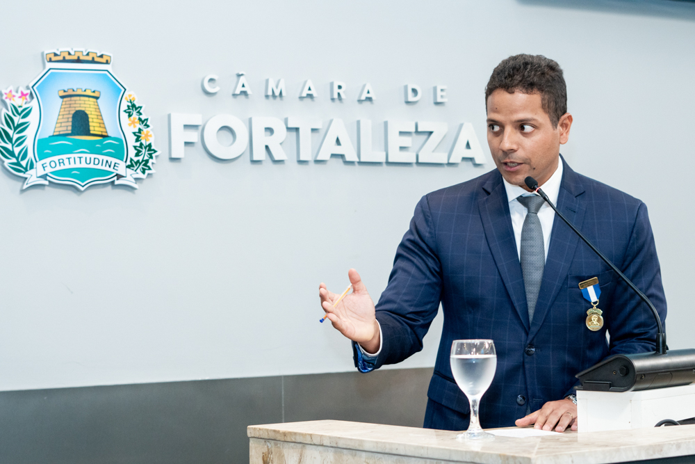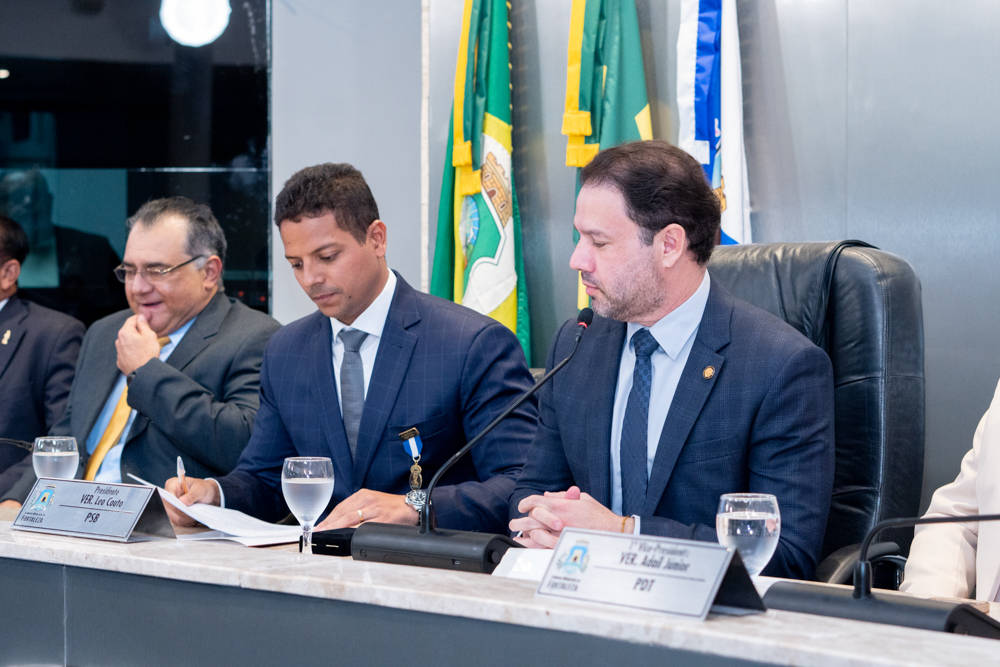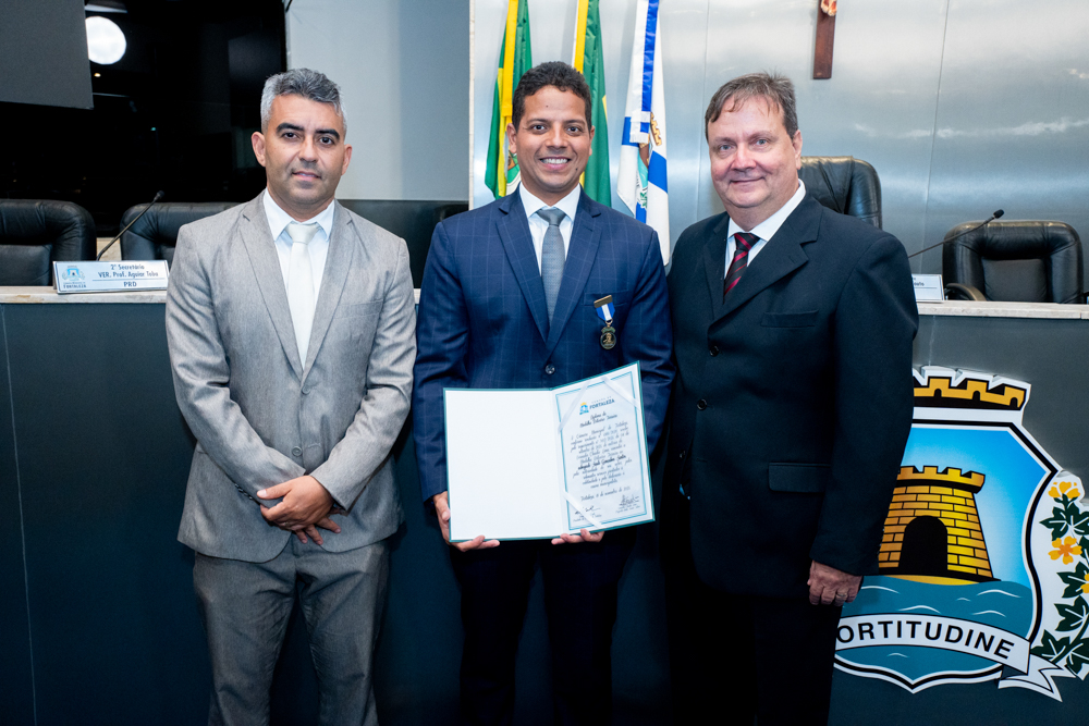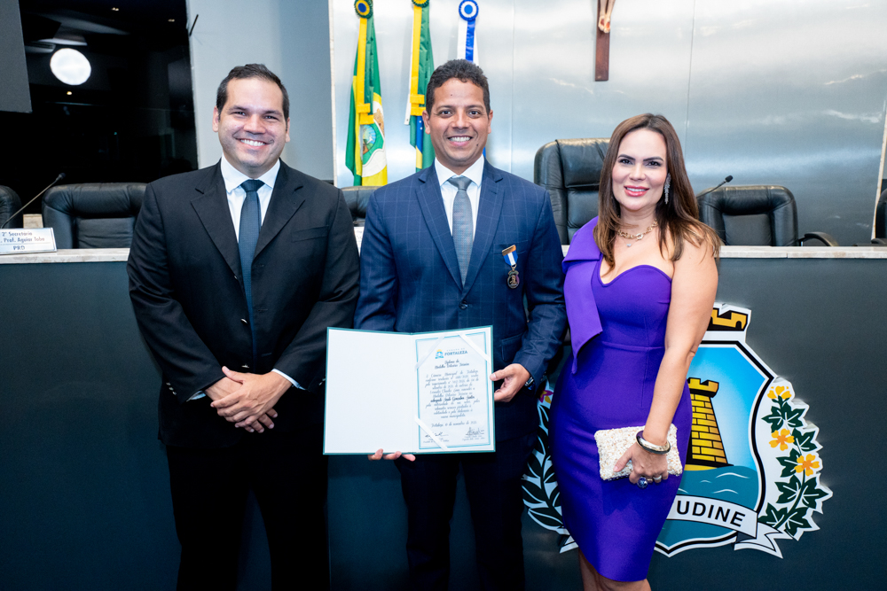 Autoridades da política e do judiciário reuniram-se na quarta-feira (19), no Plenário Fausto Arruda, da Câmara Municipal de Fortaleza, para acompanhar a sessão solene que outorgou a Medalha Boticário Ferreira ao advogado cearense Saulo Gonçalves Santos. A distinção ressaltou a contribuição do procurador do município de Caucaia, cuja trajetória no Direito Público e Tributário se entrelaça à pesquisa acadêmica e à experiência na magistratura cearense. Proposta pelo vereador Cláudio Lima e conduzida pelo presidente da Câmara, Leo Couto (PSB), a solenidade foi prestigiada pelos desembargadores Raimundo Nonato Silva Santos, Francisco Mauro Ferreira Liberato e Cid Marconi.