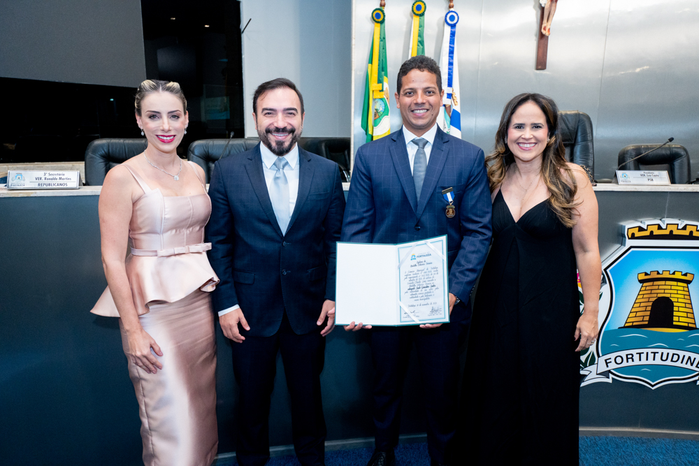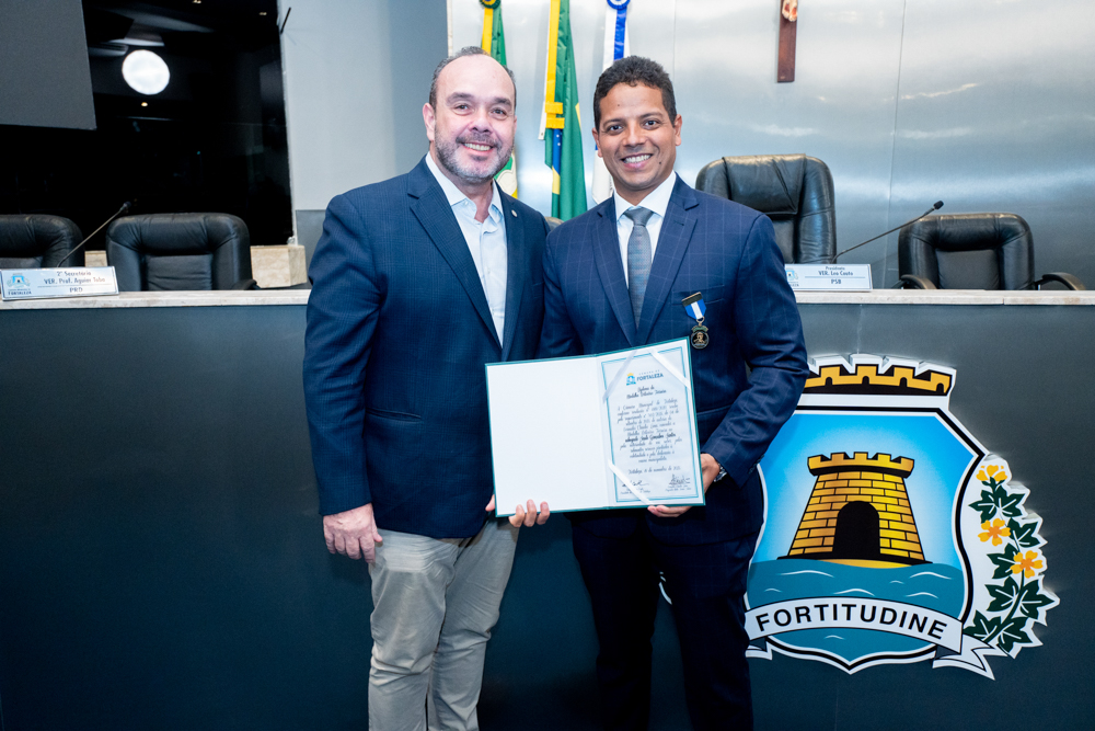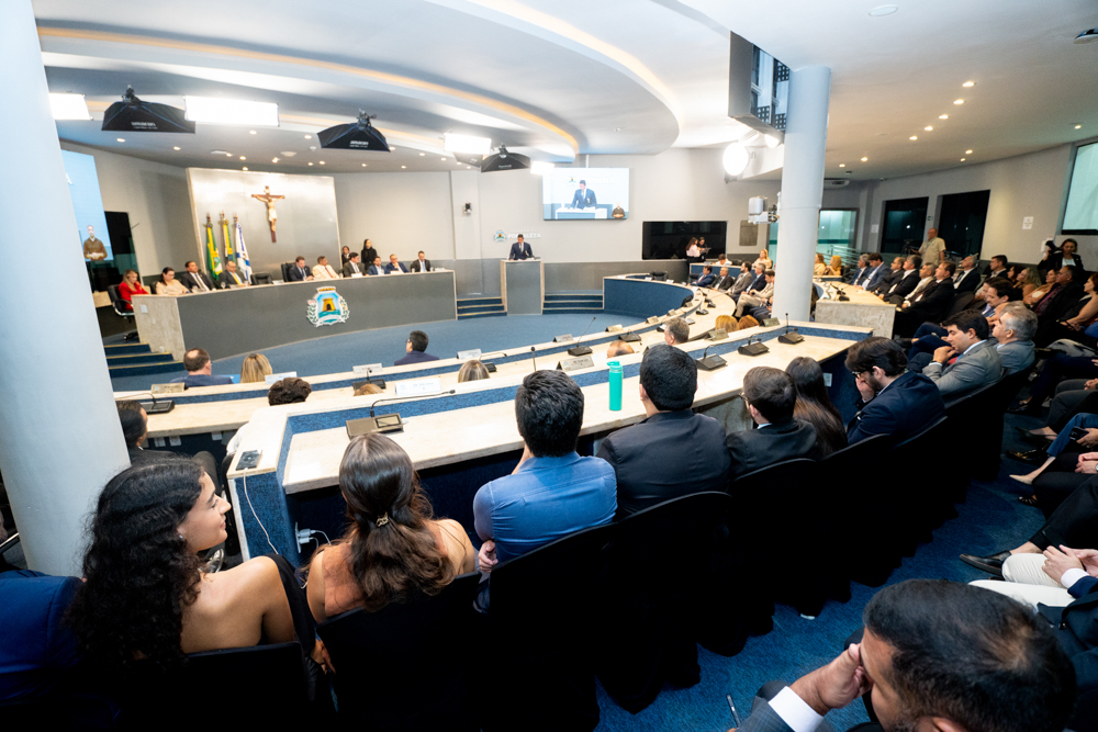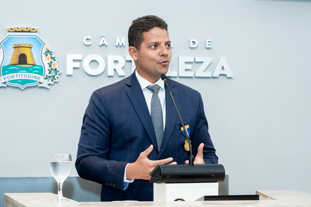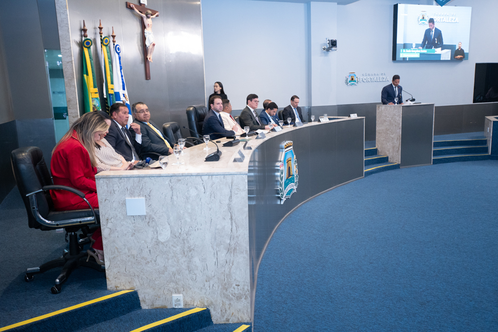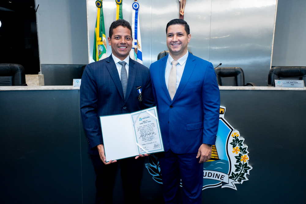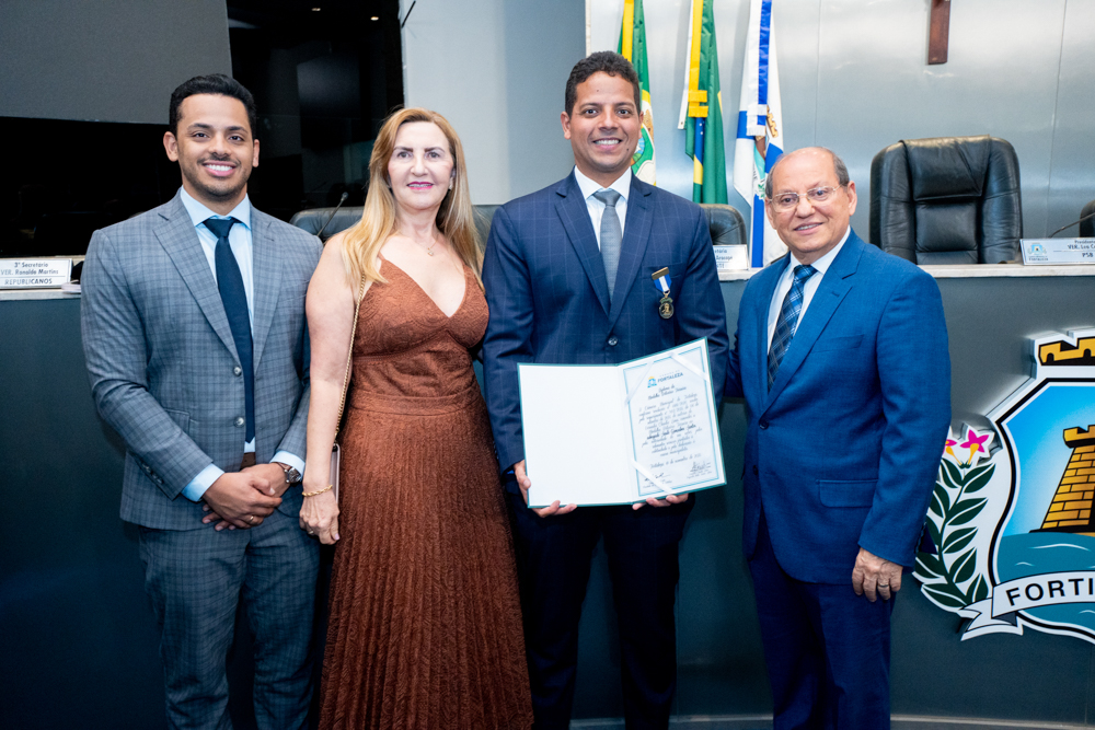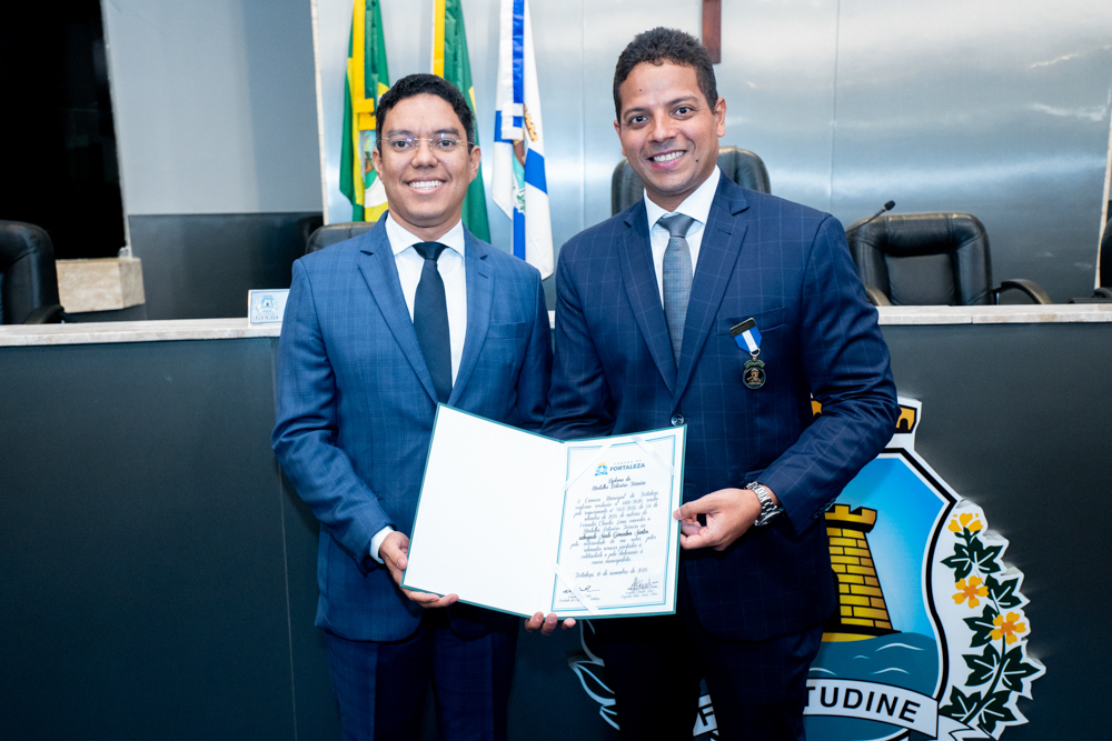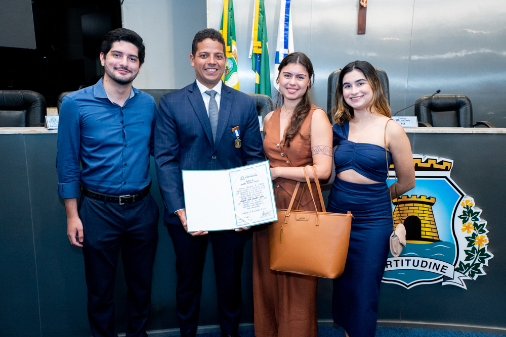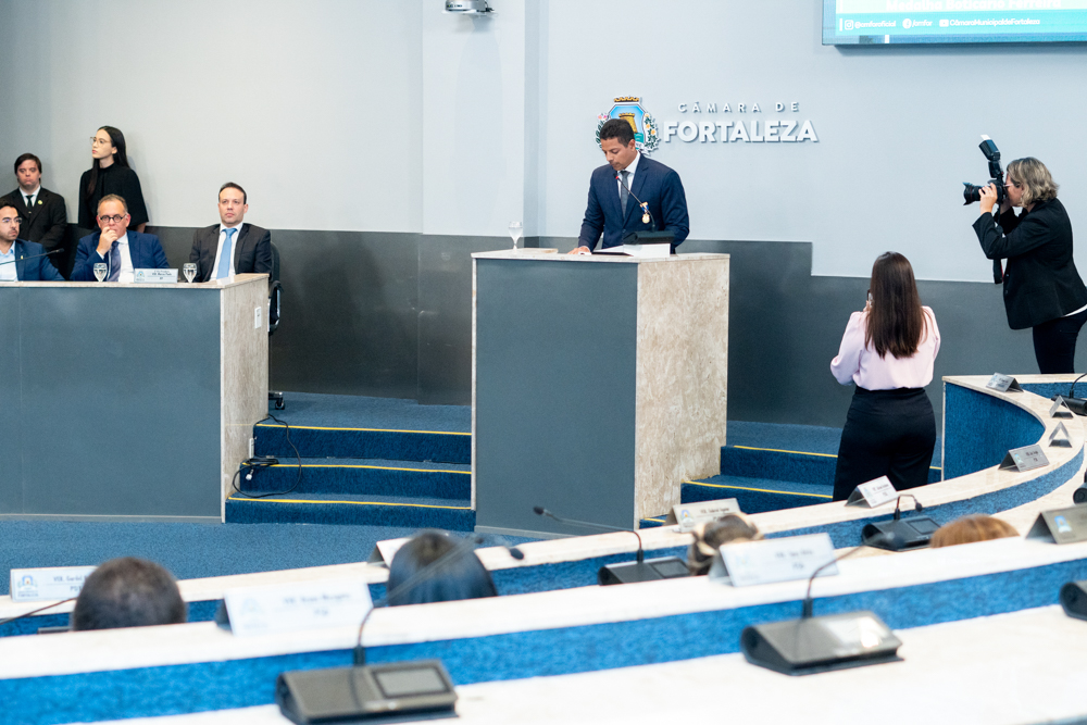 Autoridades da política e do judiciário reuniram-se na quarta-feira (19), no Plenário Fausto Arruda, da Câmara Municipal de Fortaleza, para acompanhar a sessão solene que outorgou a Medalha Boticário Ferreira ao advogado cearense Saulo Gonçalves Santos. A distinção ressaltou a contribuição do procurador do município de Caucaia, cuja trajetória no Direito Público e Tributário se entrelaça à pesquisa acadêmica e à experiência na magistratura cearense. Proposta pelo vereador Cláudio Lima e conduzida pelo presidente da Câmara, Leo Couto (PSB), a solenidade foi prestigiada pelos desembargadores Raimundo Nonato Silva Santos, Francisco Mauro Ferreira Liberato e Cid Marconi.