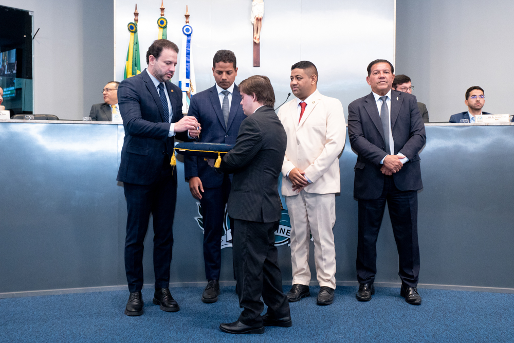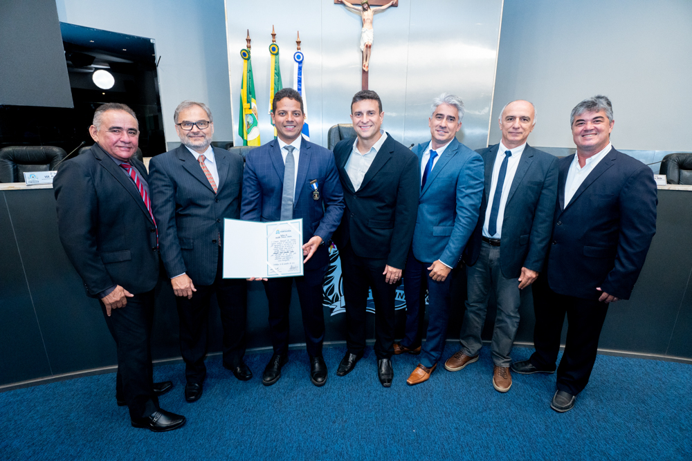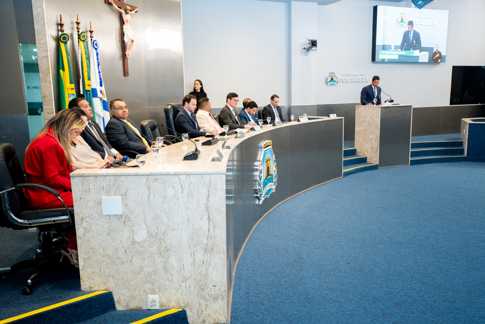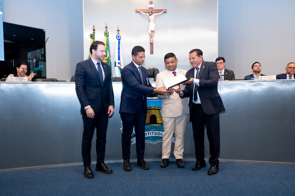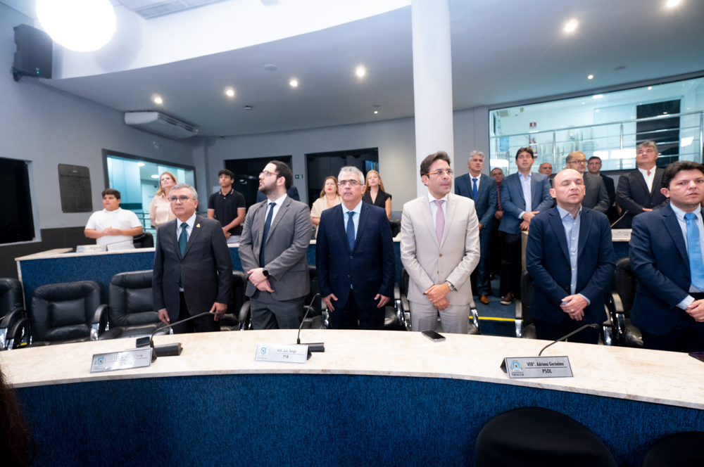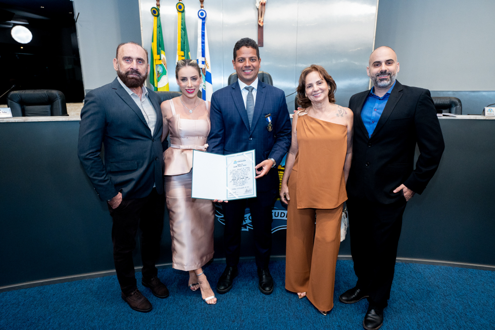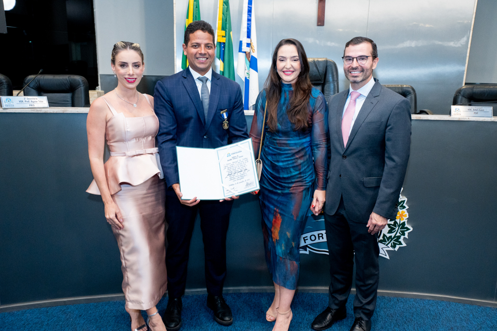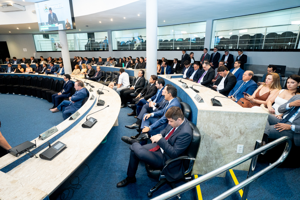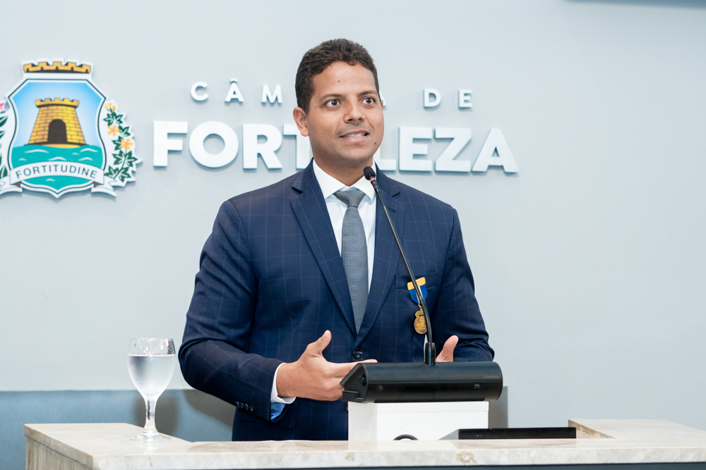 Autoridades da política e do judiciário reuniram-se na quarta-feira (19), no Plenário Fausto Arruda, da Câmara Municipal de Fortaleza, para acompanhar a sessão solene que outorgou a Medalha Boticário Ferreira ao advogado cearense Saulo Gonçalves Santos. A distinção ressaltou a contribuição do procurador do município de Caucaia, cuja trajetória no Direito Público e Tributário se entrelaça à pesquisa acadêmica e à experiência na magistratura cearense. Proposta pelo vereador Cláudio Lima e conduzida pelo presidente da Câmara, Leo Couto (PSB), a solenidade foi prestigiada pelos desembargadores Raimundo Nonato Silva Santos, Francisco Mauro Ferreira Liberato e Cid Marconi.