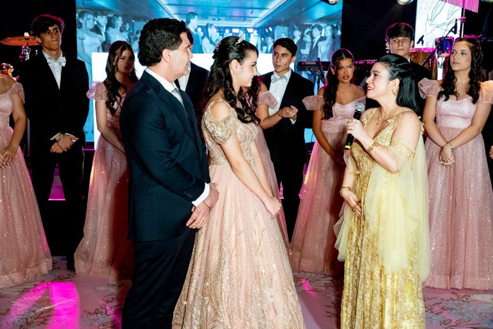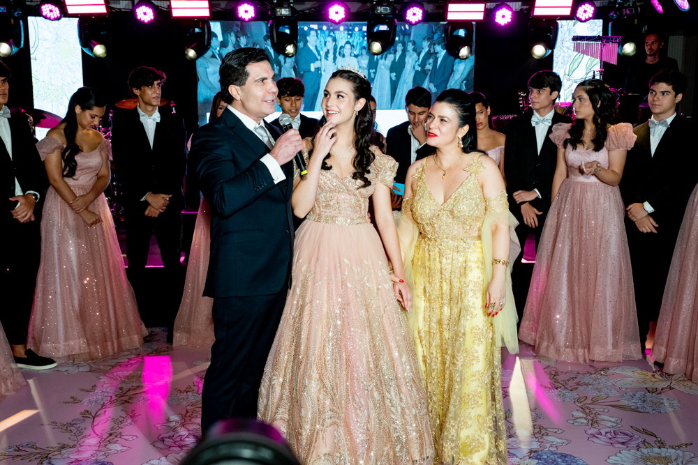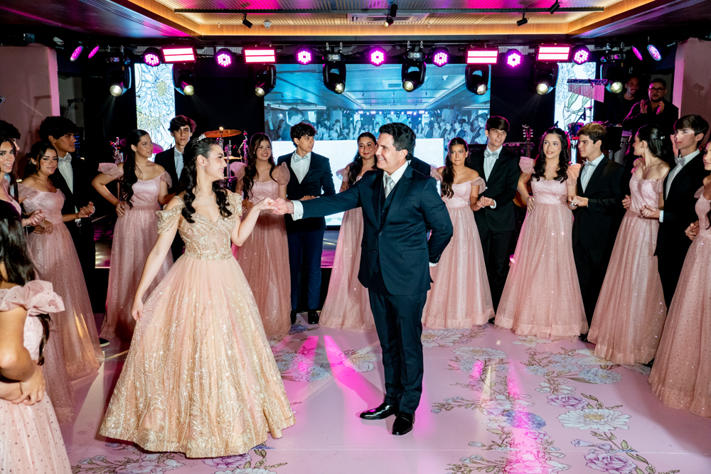 Rafaella Timbó Queiroz, filha de Ticiana Timbó Queiroz e Alexandre Queiroz, celebrou seus 15 anos no sábado (25), em um cenário que combinou elegância clássica e atmosfera jovem no Hotel Gran Marquise. A assinatura de estilo foi da estilista Verônica Rodrigues, que vestiu a debutante e as mulheres da família, incluindo a mãe, Ticiana, e as irmãs Isabella e Gabriella, traduzindo unidade estética e sofisticação à celebração. Com cerimonial de Raquel Mendonça e décor de Willfridy Mendonça, a festa ganhou ambientação refinada, complementada pelo belo bolo de Marilza Pessoa, doces da Doce Mel e coquetelaria da Coktelitas. A trilha sonora ditou o ritmo crescente de animação, iniciando ao som do pianista Paulo Rodrigo e evoluindo para apresentações do DJ Thiago Camargo, Gih & Jales, e a dupla Luis Marcelo e Gabriel. Entre momentos especiais e surpresas preparadas para os convidados, Rafaella comemorou seu debut com tudo o que tem direito. Confira os clicks!