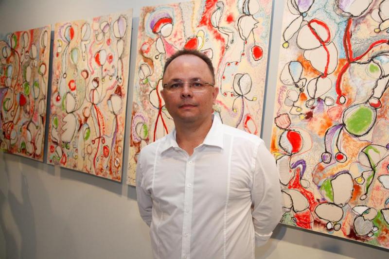 O artista plástico Totonho Laprovitera já estreou em mais uma exposição. Qual? A mostra coletiva ‘Percursos’, que foi aberta ontem, na Galeria Vicente Leite, da Fa7. Totonho exibe, entre seus quadros, o intitulado de ‘Constelações Nordestinas’. ”Formadas pelo conjunto de estrelas celestes, as Constelações chispam no céu do sertão nordestino. Para avistá-las, nem é preciso aprumar muito a vista. À noite, basta espiar pra riba, na escuridão do firmamento mirar os pontos de luz, marcá-los com espinhos de mandacaru, e traçar suas figuras com as linhas da imaginação”, contou o artista. Além dele, também participam da mostra, Expedito Lima, Marcos Oriá, Marcelo Grud, Nelson Bezerra, Stênio Burgos e Thyago Cabral. Aos cliques!