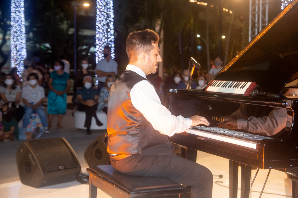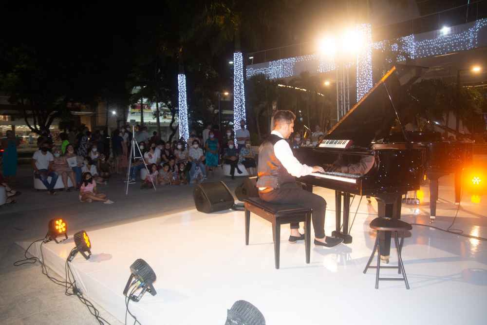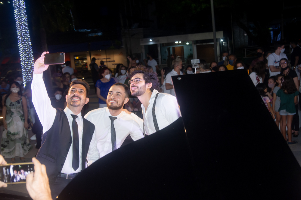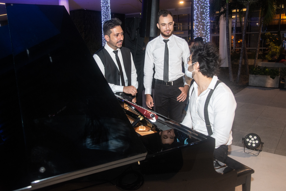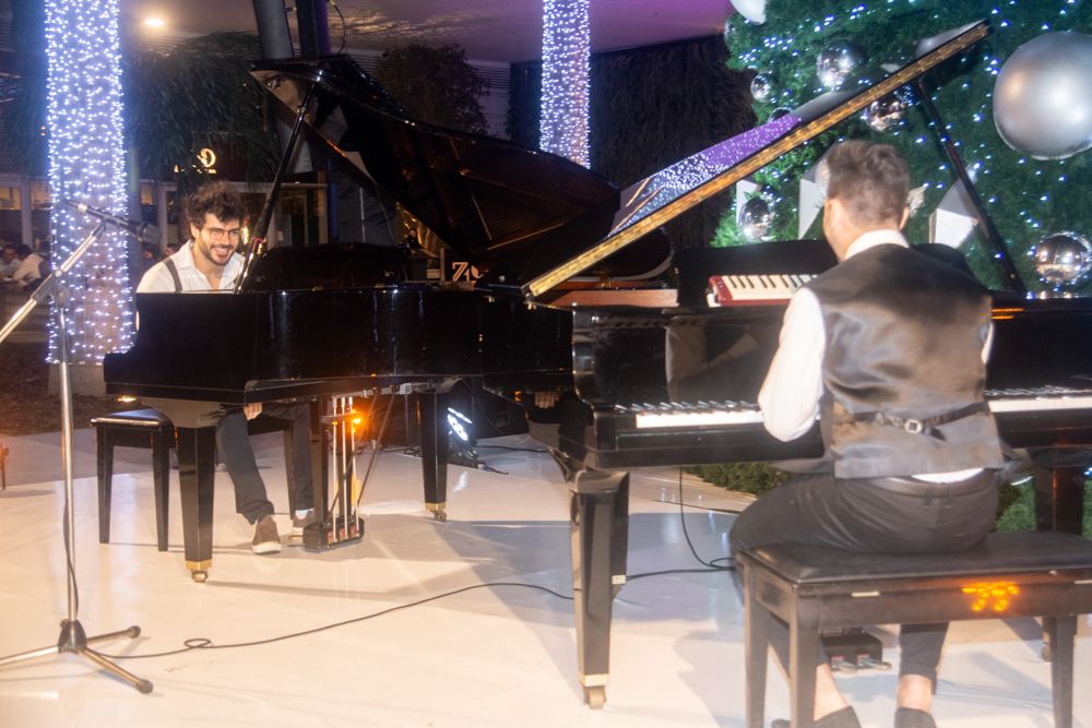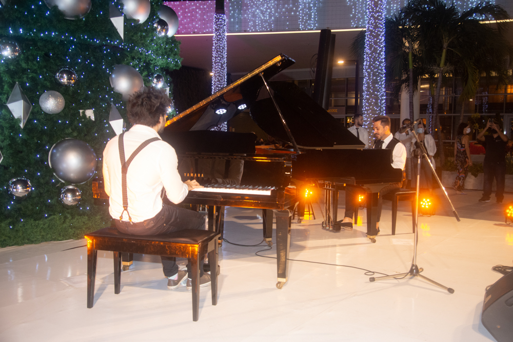 Como parte da programação do BS Christmas, a Praça BS recebeu um concerto especial de piano com a participação dos pianistas Felipe Adjafre, Rafael Maia e Ernesto Pordeus, e do tenor Ricardo Máximo. No repertório, o trio surpreendeu o público com uma mescla de músicas natalinas e clássicos contemporâneos. O show, desenvolvido de forma inusitada, teve algumas canções tocadas a seis mãos e dois pianos, em uma apresentação totalmente performática. Quer saber como foi? Confira os clicks na galeria a seguir!