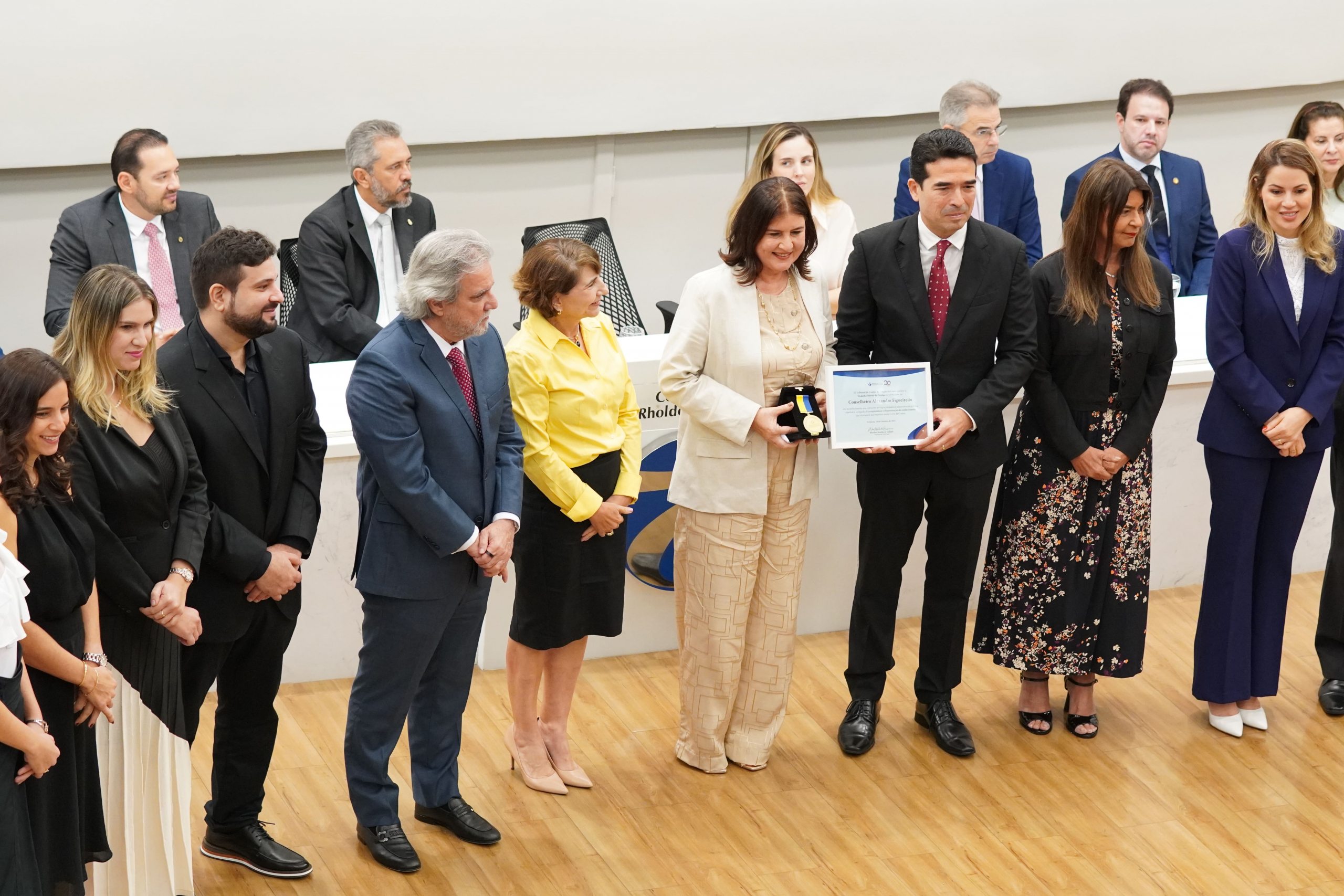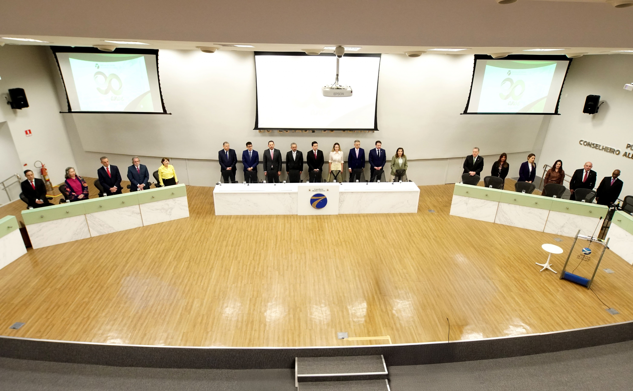 A celebração pelos 90 anos do Tribunal de Contas do Estado do Ceará (TCE Ceará) reuniu autoridades, servidores e convidados na manhã de terça-feira, 14 de outubro, no auditório do Edifício 5 de Outubro, em Fortaleza. Em clima de emoção e orgulho institucional, o evento marcou a inauguração do letreiro “Plenário Conselheiro Alexandre Figueiredo”, homenagem póstuma ao conselheiro falecido em 2024. A Camerata da Unifor embalou a sessão especial com clássicos da música cearense, e Chambinho do Acordeon e Nonato Lima executaram à sanfona o Hino Nacional. A programação contou ainda com homenagens especiais e a entrega da Medalha de Mérito da Corte de Contas à família de Alexandre Figueiredo. Com presenças de destaque e atmosfera festiva, a data rememorou o grande legado de dedicação do TCE Ceará à transparência, ao controle público e à cidadania. Acompanhe na galeria os melhores registros da solenidade!