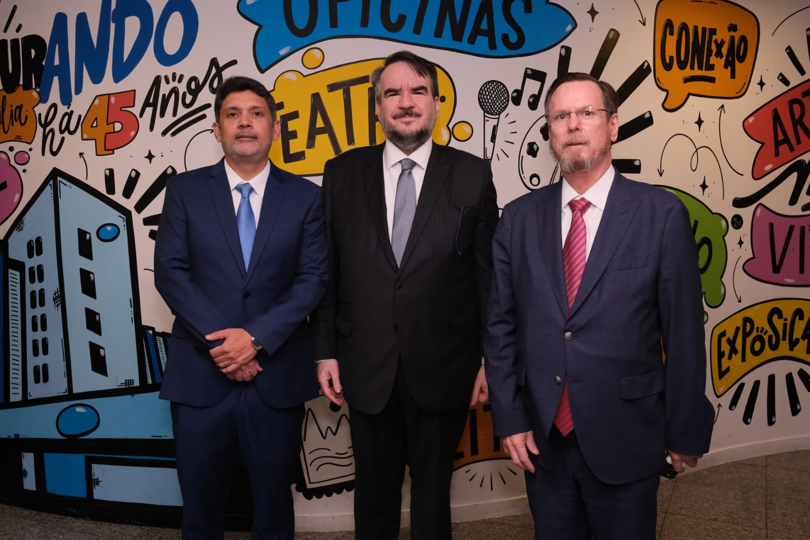 Ministro Antônio Carlos é ladeado pelo colega de STJ, Teodoro Silva Santos (esq.), e pelo advogado Bruno Queiroz (dir.). Fotos: Divulgação