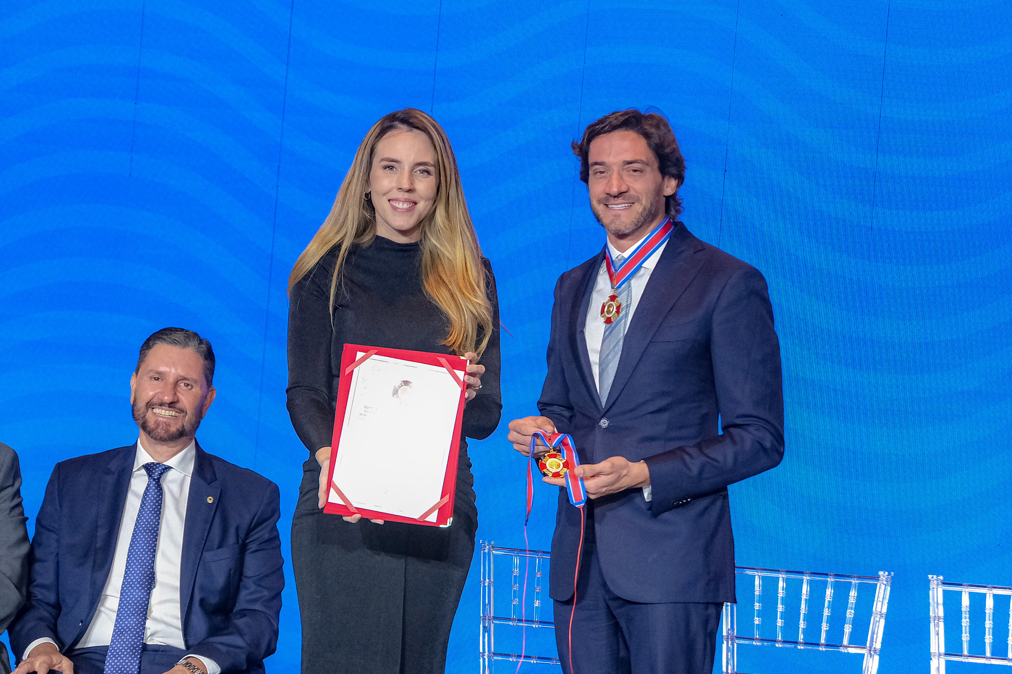 O governador Elmano de Freitas (PT) foi agraciado, mas, como está em Nova York participando da 80ª Assembleia da ONU, a vice, e governadora em exercício, Jade Romero (MDB), o representou.