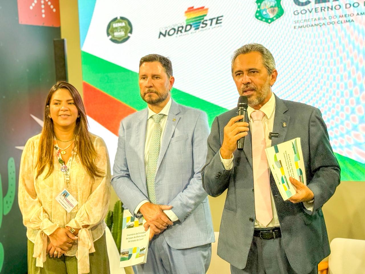 “Os dados sobre as emissões no Ceará servirão como base para o aprimoramento das políticas públicas voltadas à mitigação das mudanças climáticas”, destacou Elmano de Freitas, durante a apresentação no espaço Brasil Nordeste.