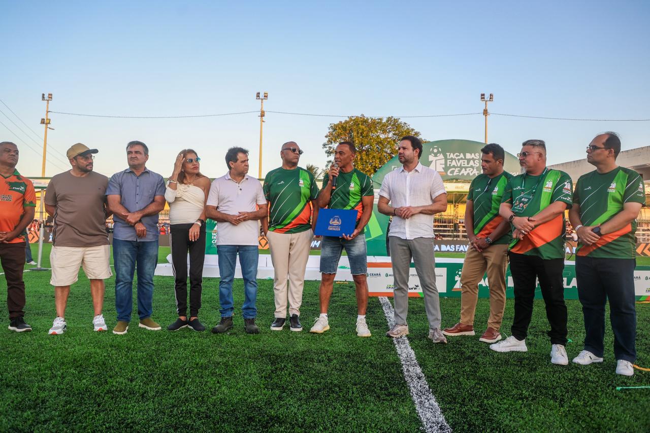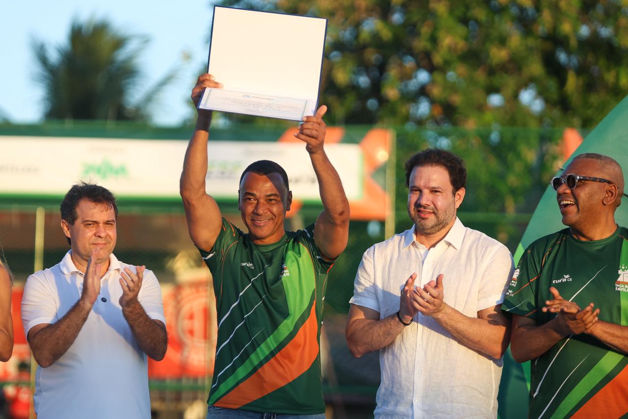 O ex-jogador Marcos Evangelista de Morais, o Cafu, recebeu, nesse sábado (30), o Título de Cidadania Honorária de Fortaleza. O momento da homenagem concedida pelo presidente da Câmara Municipal (CMFor), Leo Couto, e pelo prefeito Evandro Leitão, contou com várias personalidades reunidas também para prestigiar a inauguração da Areninha Campo do AEC, no bairro Passaré, e a final de um torneio da Cufa Ceará.