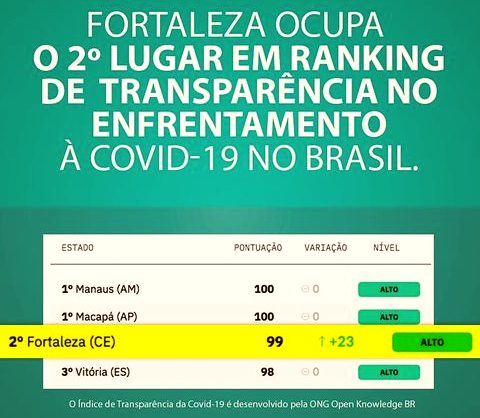 “Fortaleza, mais uma vez, é destaque no quesito transparência nas ações de enfrentamento à Covid-19, ocupando o 2º lugar no ranking. Esse reconhecimento é reflexo de um trabalho sério e da união de forças de pessoas comprometidas que lutam, dia após dia, para combater esse desafio da saúde”, afirmou.