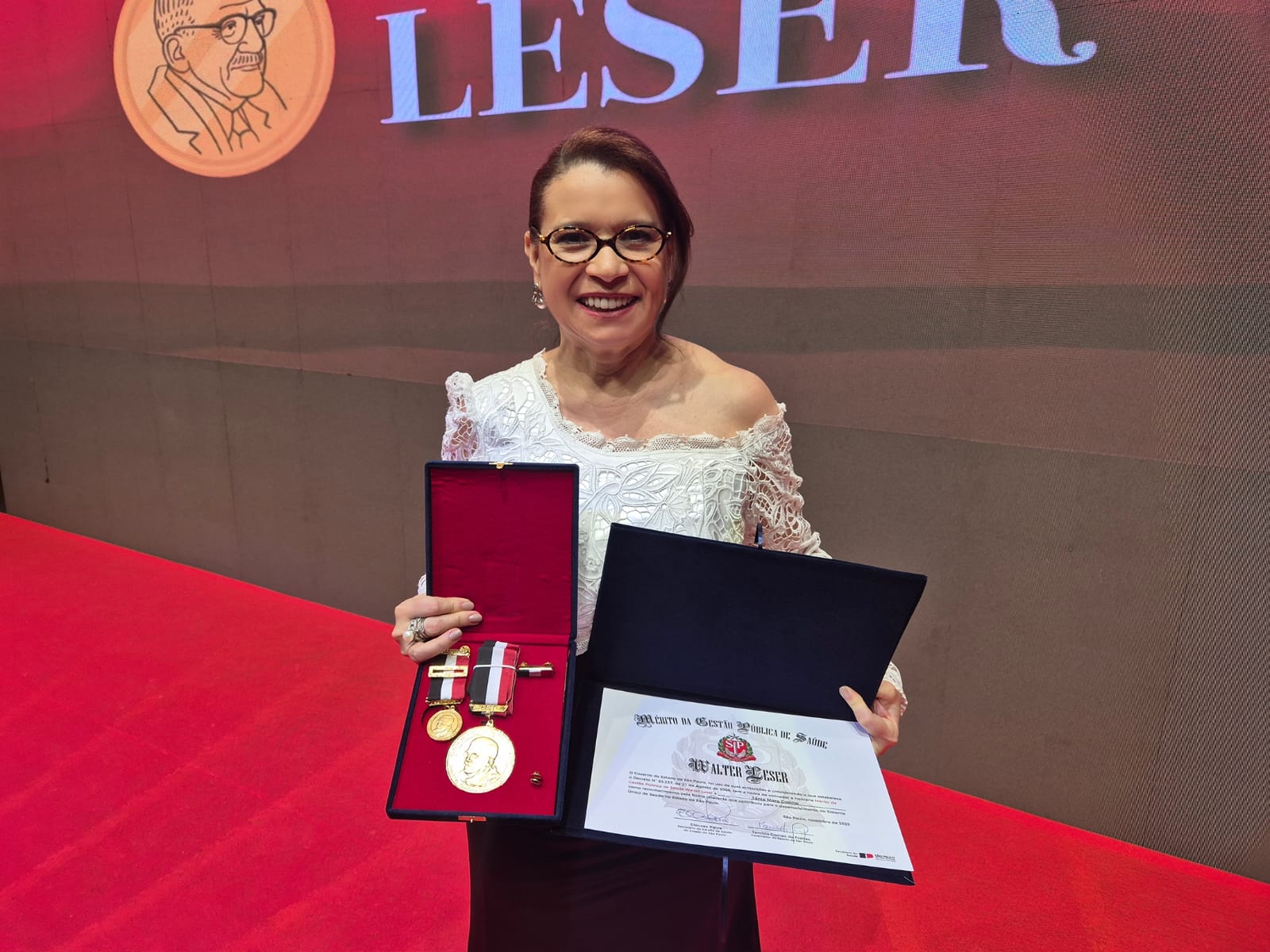 A secretária da Saúde do Ceará e presidente do Conselho Nacional de Secretários de Saúde (Conass), Tânia Mara Coelho, recebeu nessa terça-feira (18), na Sala São Paulo, na capital paulista, a Medalha de Honra e Mérito da Gestão Pública em Saúde “Walter Leser”.