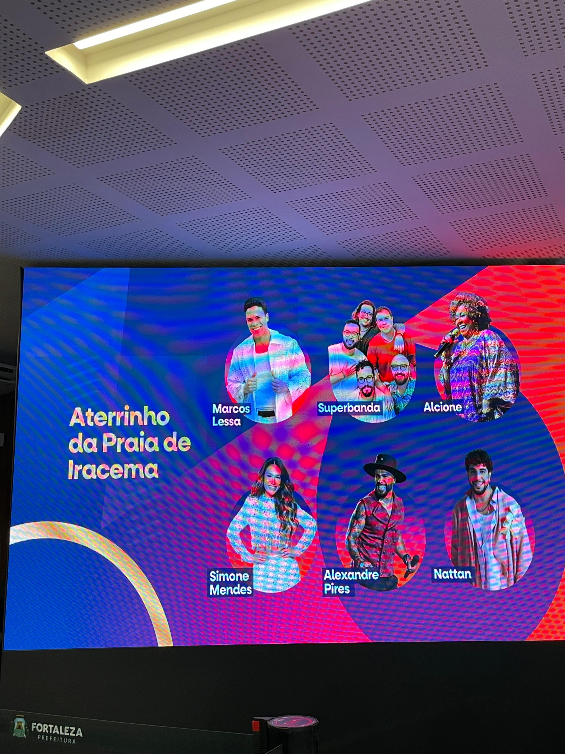 A programação musical também ganha protagonismo no fim de semana do aniversário, com apresentações no Aterrinho da Praia de Iracema. Entre os nomes confirmados estão Alcione, Marcos Lessa, Nattan, Simone Mendes, SuperBanda e Alexandre Pires.