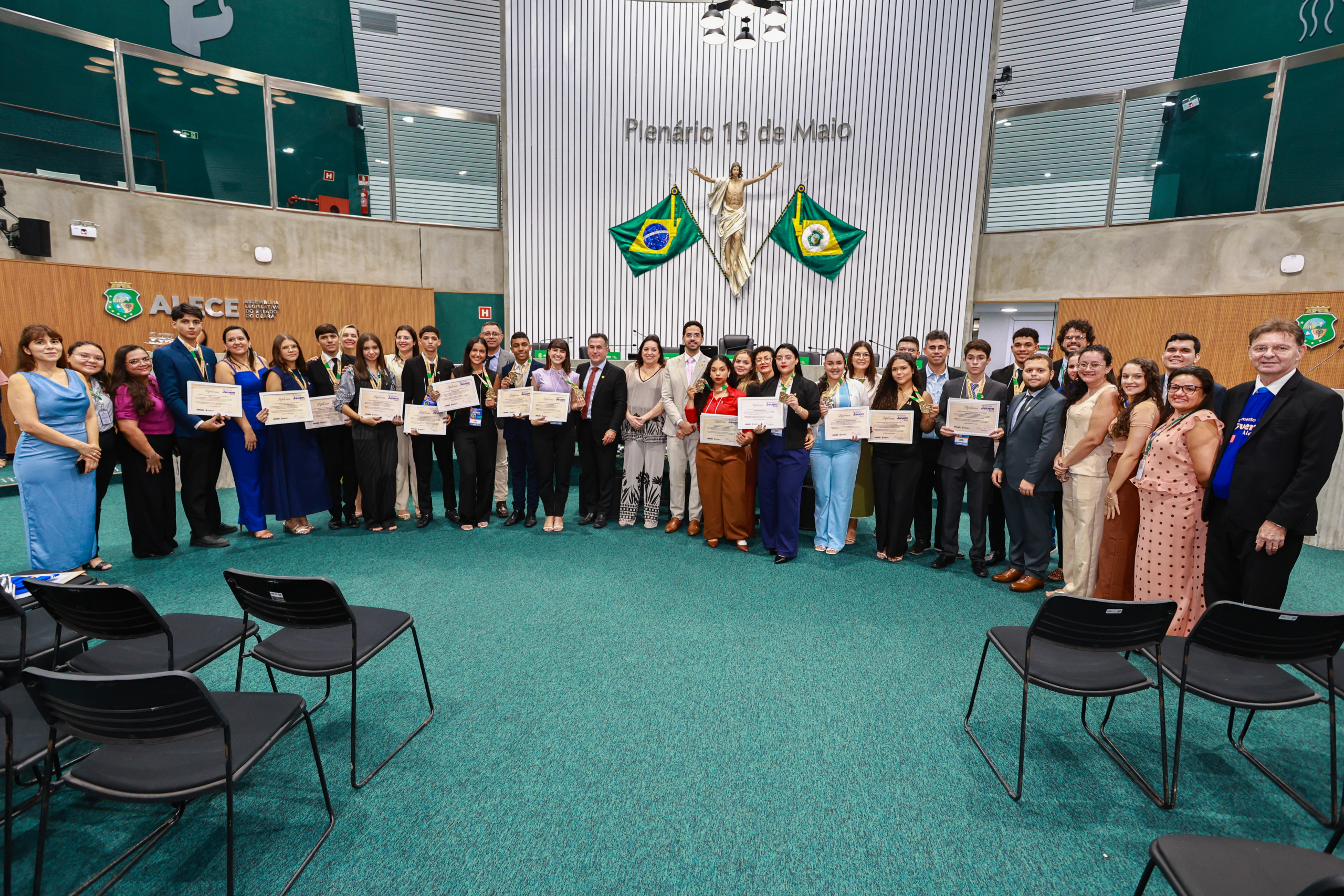 A Assembleia Legislativa do Ceará (Alece) recebeu, nessa quinta-feira (11), 14 jovens parlamentares de sete municípios do Ceará para uma imersão que marcou o encerramento do programa Parlamento Jovem. A iniciativa é da Diretoria Legislativa (DL) e da Escola Superior do Parlamento Cearense (Unipace).