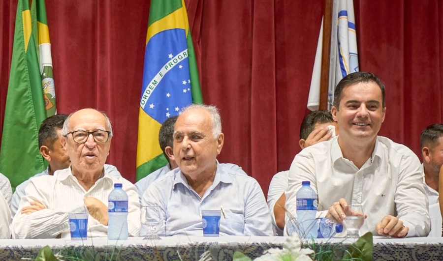 Lúcio Alcântara, Roberto Pessoa e Wagner Sousa, durante a cerimônia de posse do novo secretário de Saúde de Maracanaú