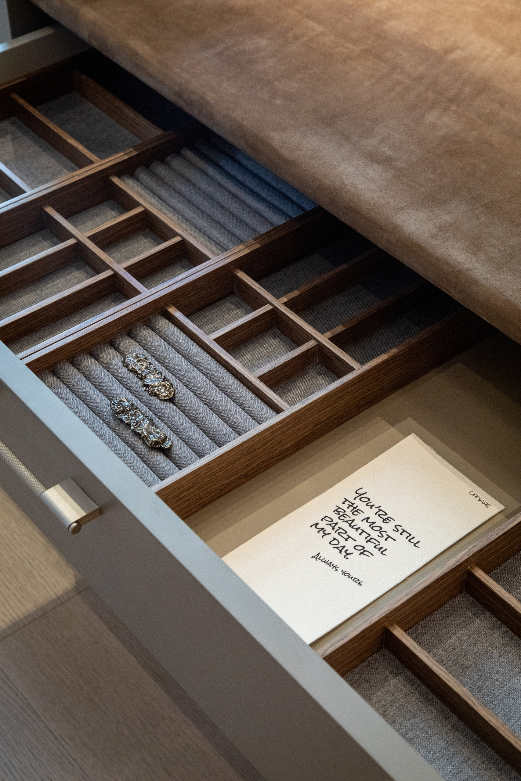 O projeto ganha escala com colaborações estratégicas. Parcerias com Officinarkitettura, By Gabs e Softhome ampliam o repertório e reforçam a atuação da Ornare como plataforma criativa, conectando superfícies, objetos e linguagem estética.