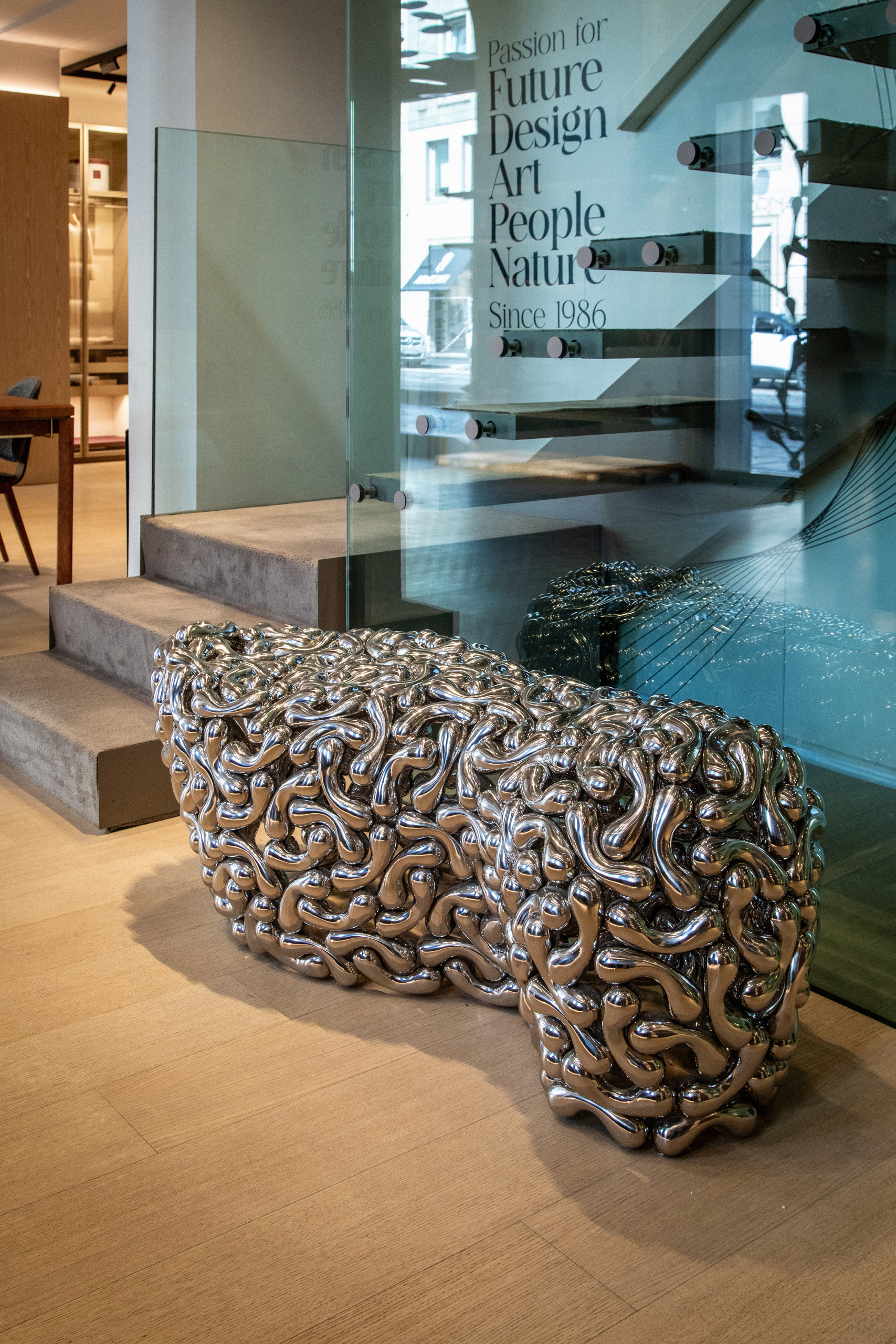 No campo cultural, a iniciativa Art All Around chega à terceira edição com participação da Galleria Continua. O showroom recebe obras de Loris Cecchini, artista conhecido por criar estruturas orgânicas que dialogam com a arquitetura e transformam o espaço em uma experiência dinâmica.