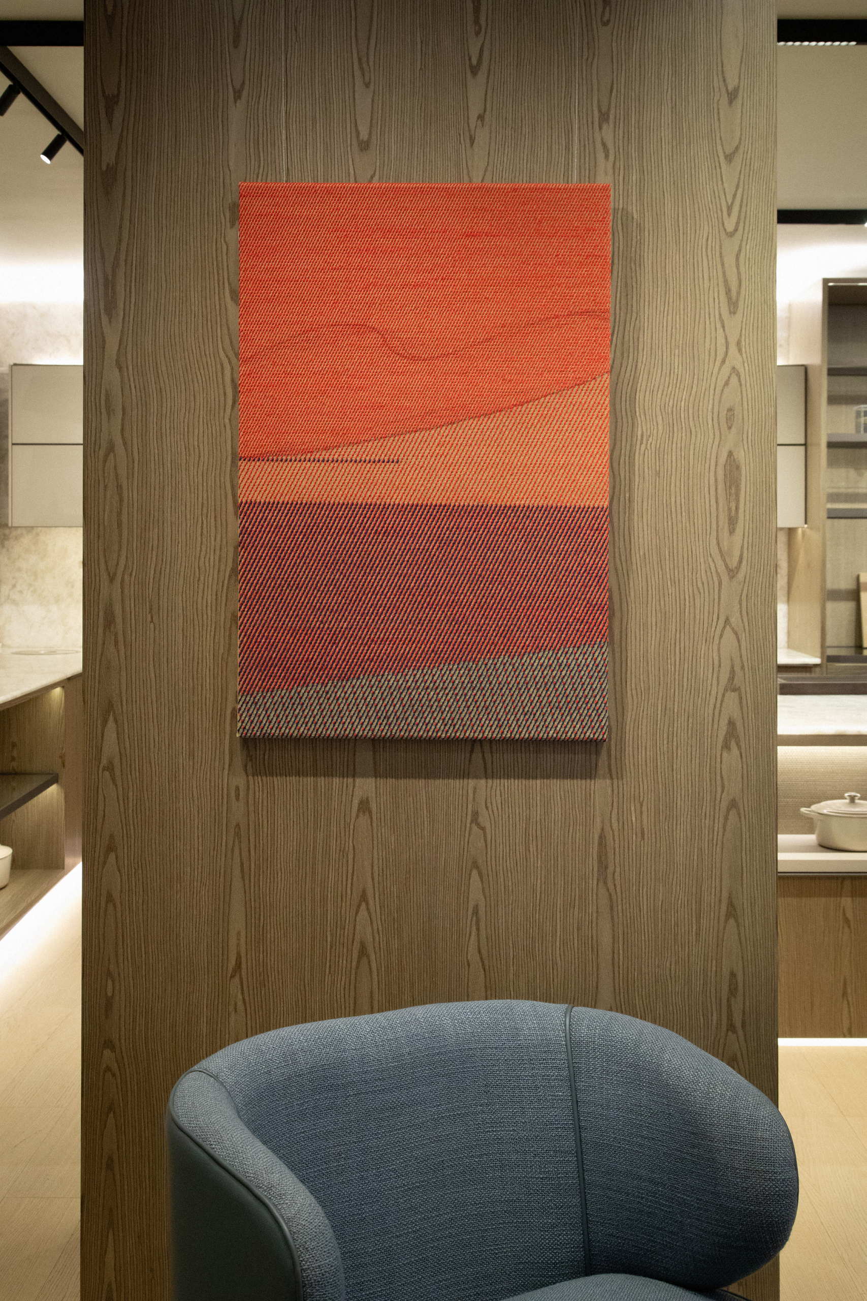 Outro destaque é a instalação Respiro Kinetico, desenvolvida com o estúdio Diorama, que utiliza luz e movimento para ativar o ambiente e propor uma leitura sensorial do espaço.