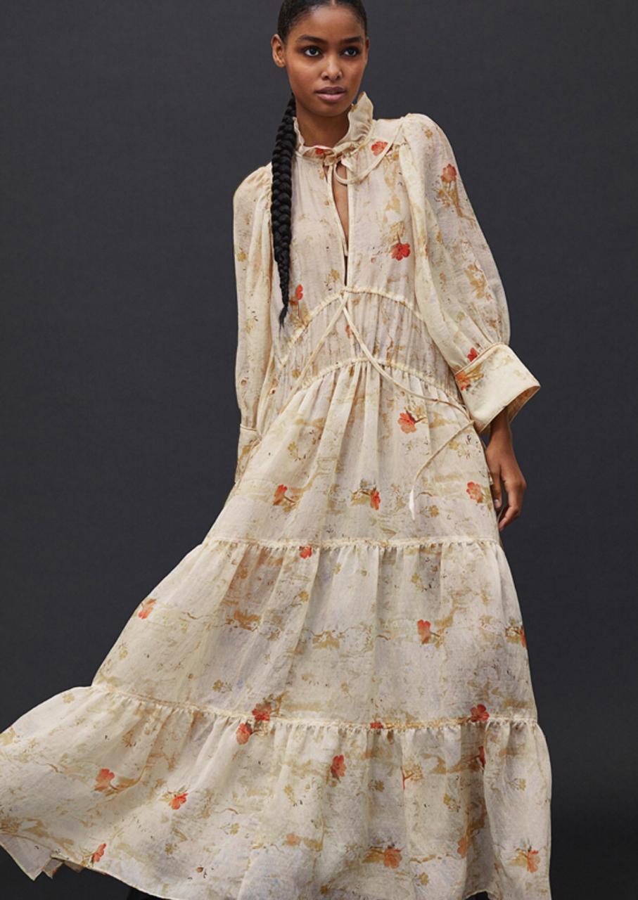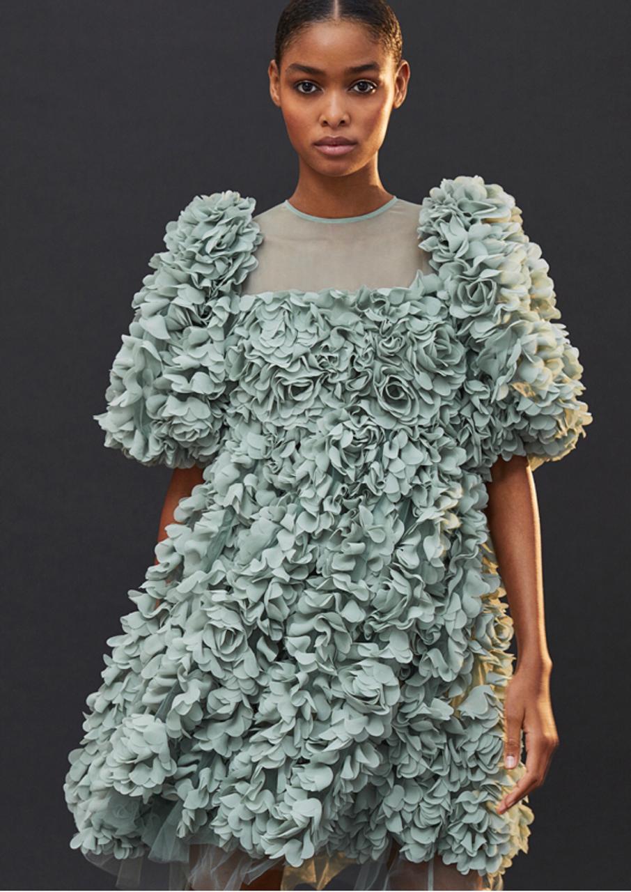 A coleção H&M Conscious Exclusive AW20 inclui tecidos e processos inovadores que transformam desperdício de colheitas alimentares em fibras naturais, tecidos feitos a partir de polpa de madeira sustentável ou, ainda, processos únicos de peça-para-peça. Estes materiais podem ser encontrados em peças como vestidos de noite em jacquard tafetá preto e verde, jacquard amarelo ou em flores leves em verde claro que convivem com tops volumosos e peças de alfaiataria.
