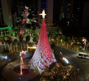 Em sua base, há oito gigantes velas hasteadas, cada uma destas emolduradas por um sol estilizado. Unidas formam um carrossel moldando uma gigantesca tenda estrelar. O visitante mantendo-se embaixo da árvore e ao avistar o topo perceberá um espiral de velas em diferentes tamanhos, Por fim temos um elemento natalino, que seguindo o sucesso das edições anteriores, faz justa homenagem à nossa cultura. Valoriza o que é nosso, interage com o povo, conversa com o ambiente, tornando o Natal mais regional, mais acolhedor. A arvore tem a autoria do escritório de arquitetura e design DP arquitetura de Denise Olinda e Pablyto Leívio. @dparquitetura