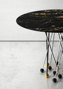 A mesa de jantar em vidro que se diferencia por sua base estruturada de hastes em aço inox que buscam as formas dos tradicionais alfinetes de costura. Intitulada Liaison Table, a coleção criada pela o designer italiano Daniele Ragazzo é composta por mesas com tampo circular em vidro, as hastes são coladas com diferentes inclinações utilizando cola UV para vidro. @daniele_ragazzo