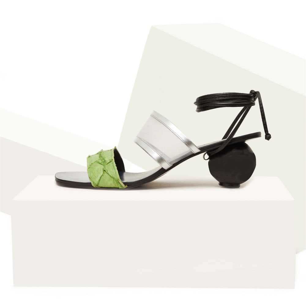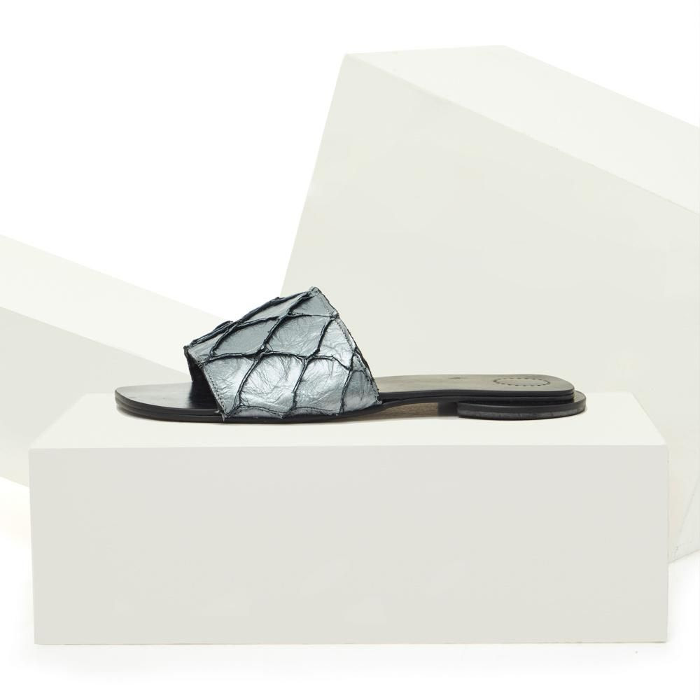 As flats e os saltos feitos com o couro do peixe Pirarucu são naturalmente belas, resistentes, flexíveis e se destacam com texturas e cores vivas. A sustentabilidade vem do reaproveitamento de quilos de couro extraídos de comunidades ribeirinhas da Amazônia, enriquecendo a economia da população ribeirinha e reduzindo a quantidade de material descartado. Serão vendidas em edição limitada, valorizando a produção sustentável, o respeito ao meio ambiente e ao processo produtivo 100% manual.
