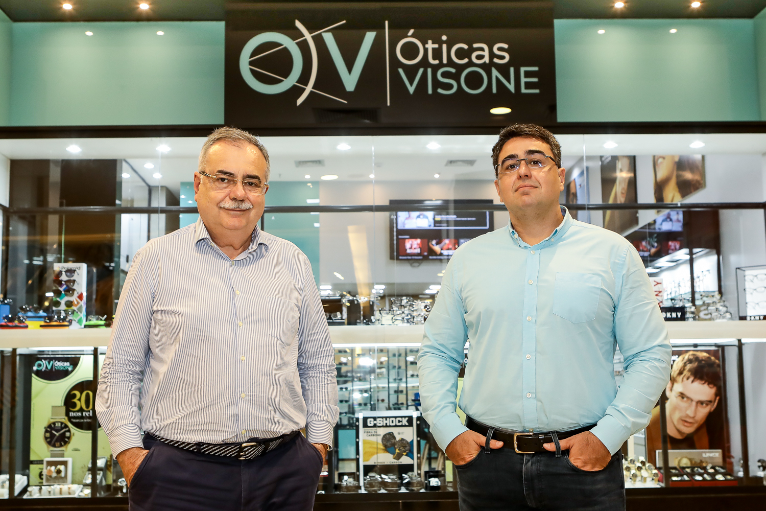 O empresário Assis Cavalcante e seu filho Eduardo estão comemorando o sucesso da nova marca do Grupo Óticas Visão, a Óticas Visone, que é destinada a um público B e C, comercializando óculos e relógios, e que funcionará em sistema de franquia. Situada no térreo do North Shopping da Avenida Bezerra de Menezes, foi inaugurada há apenas dois meses, mas o movimento vem numa constante evolução.