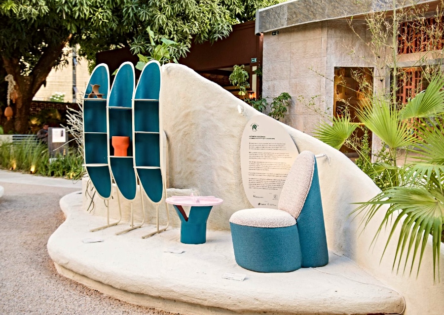 O ambiente, concebido sob o conceito de Soluções Baseadas na Natureza (SBN), propõe uma reflexão poética e contemporânea sobre o trajeto da água, desde as nascentes até o abastecimento urbano. Entre luminárias, estantes e assentos desenvolvidos com materiais reaproveitados, o RegeneraLab traduz a força do design circular ao ressignificar o descarte industrial da companhia e transformá-lo em expressão criativa e funcional.
