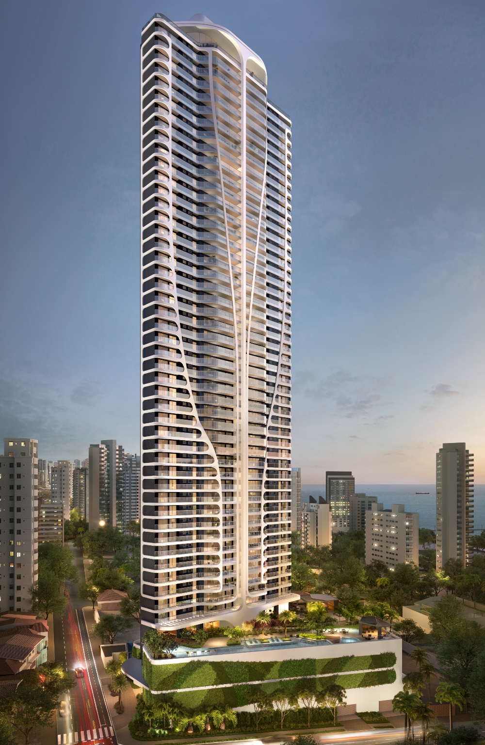 Localizado em um terreno de 3.204 m², o Mansão Diogo impressiona pela grandiosidade e exclusividade. A torre única, com 50 pavimentos, possui apenas dois apartamentos por andar, com 256 m² cada, quatro suítes, estar íntimo e quatro vagas de garagem. O empreendimento também ostenta a maior área de lazer da região e um rooftop exclusivo, que inclui academia, espaço gourmet e uma varanda panorâmica com vista privilegiada para a Beira-Mar. Além disso, tecnologias sustentáveis, como sistemas de reúso de água e iluminação LED nas áreas comuns, reforçam o compromisso com a inovação e a sustentabilidade.