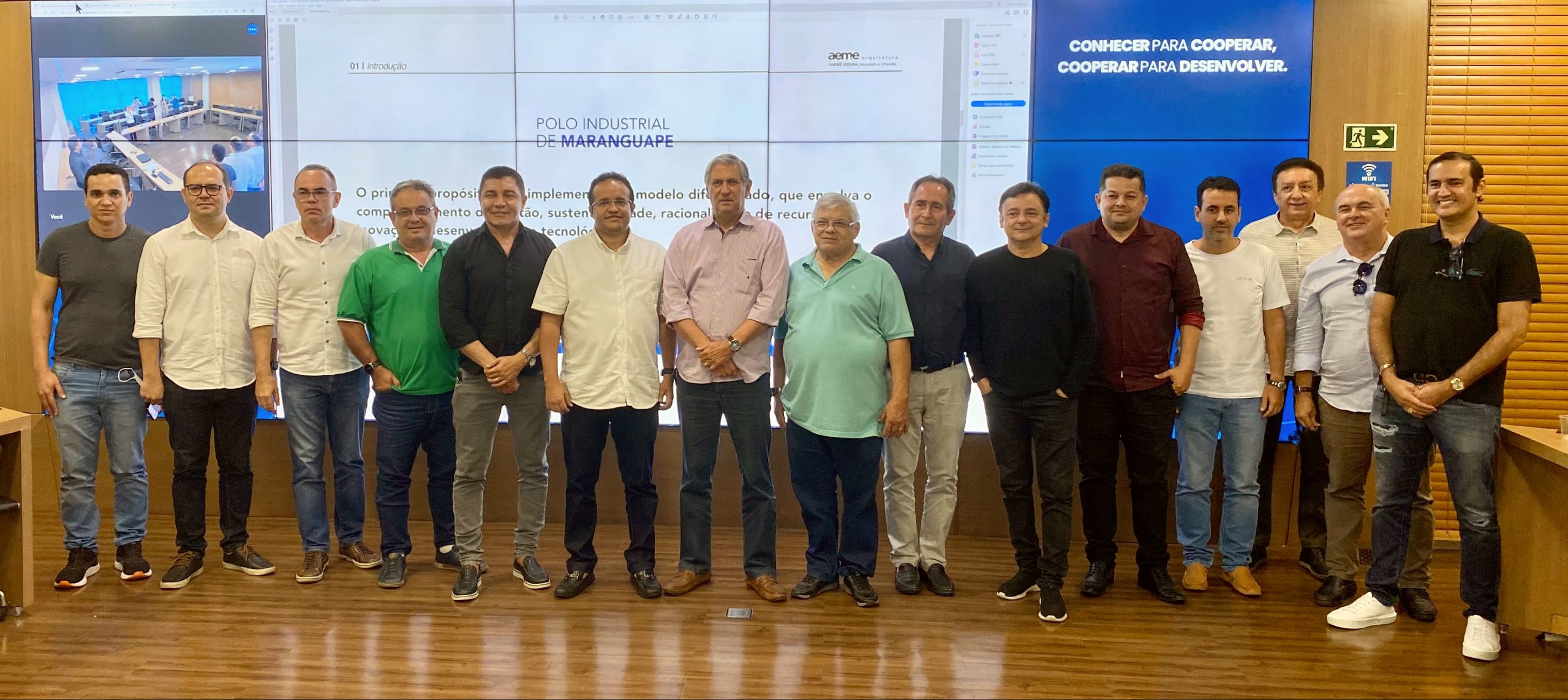 Representantes da diretoria do Sindquímica, do Sindconfecções e do Sindroupas e associados receberam, no Observatório da Indústria da FIEC, o prefeito de Maranguape, Átila Câmara. A reunião teve como objetivo apresentar o projeto de um polo industrial naquele município, que já se concretiza como uma realidade, inclusive com empresas interessadas em instalar-se no local, a exemplo do Grupo Alyne Cosméticos e da Vonixx, associadas ao Sindquímica, e também de empresas do setor de confecção, dos sindicatos filiados à Federação das Indústrias do Estado do Ceará.
