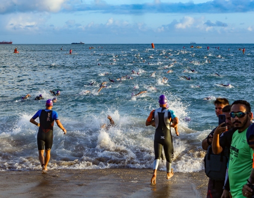 Largada do Ironman Fortaleza 70.3 2022, iniciando pela prova de natação