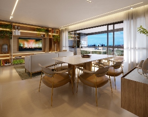 Opção de planta com cozinha integrada à sala de jantar e também à varanda gourmet, destaque dos apartamentos