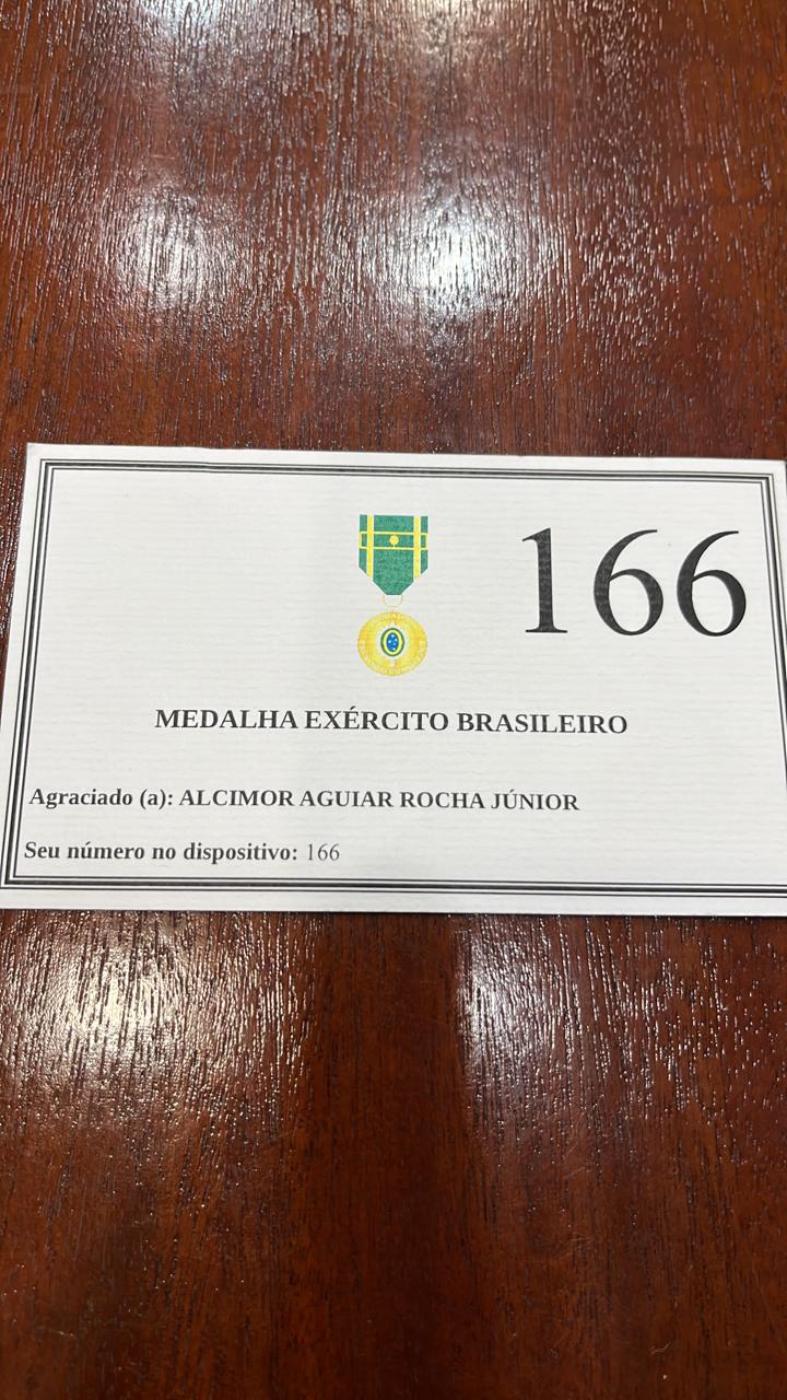 Alcimor Rocha recebeu na manhã desta quarta-feira (19), a Medalha do Exército Brasileiro, honraria concedida aos cidadãos e instituições que tenham praticado ação destacada ou serviço relevante em prol da instituição e ao país.