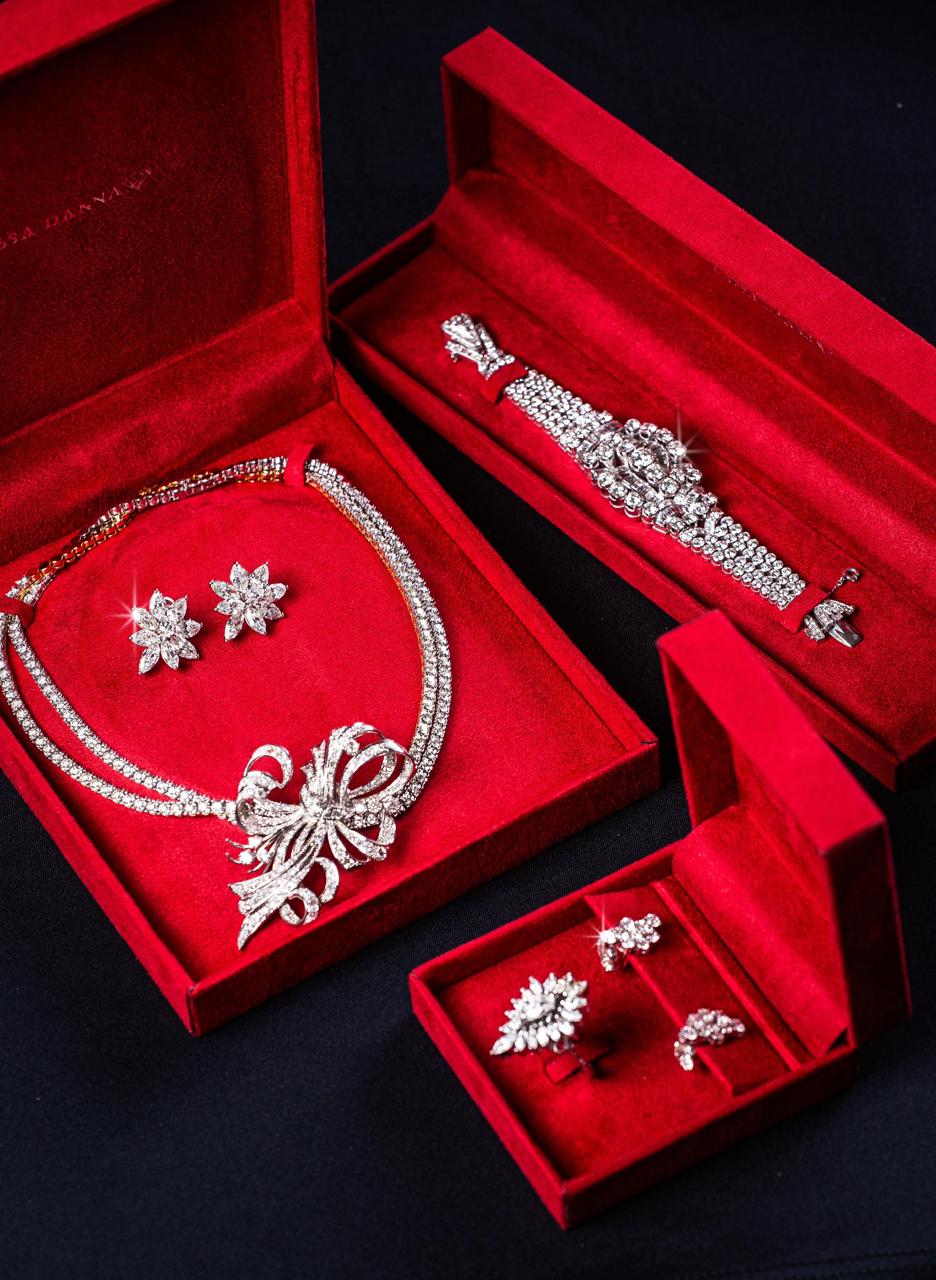 Dassa Dana, a mãe da noiva, também brilhou com uma seleção impressionante de joias, incluindo uma gargantilha cravejada de diamantes, um anel de navetes e um bracelete também adornado com diamantes. Maria, irmã de Caroll, optou por peças como uma gargantilha Princesa com diamantes fancy intense, um anel solitário fancy color e uma aliança de diamantes, totalizando 5 quilates.