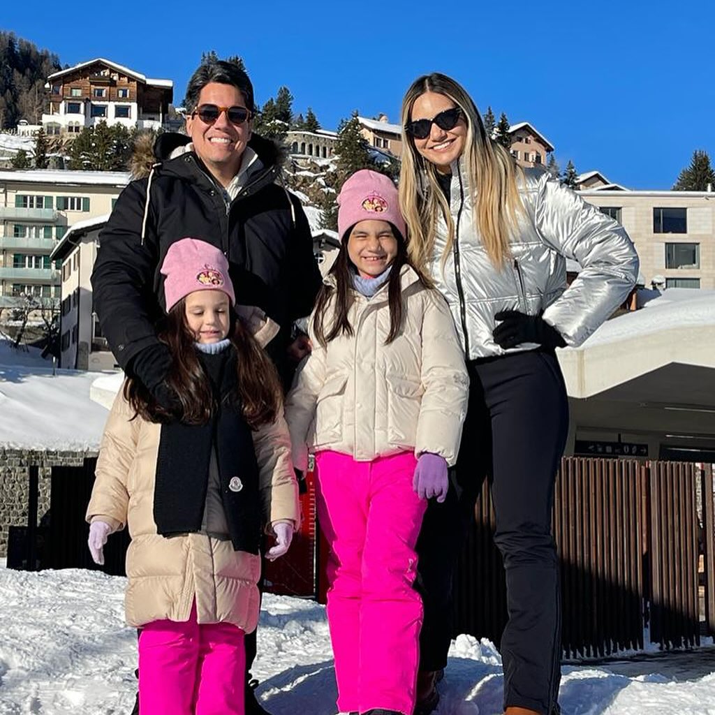 Aline e Andrei Aguiar estão aproveitando a temporada de férias na Europa ao lado das filhas, Marina e Liz. A família desfrutou dos encantos culturais de Milão, na Itália, antes de seguir para St. Moritz, na Suíça, onde vivenciou momentos incríveis em um dos destinos de inverno mais famosos do mundo, conhecido por atrair celebridades e amantes do glamour alpino.