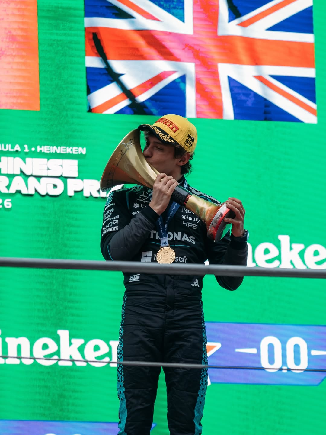 O Grande Prêmio de 2026 será inesquecível para Kimi Antonelli. Fotos: Reprodução/Instagram