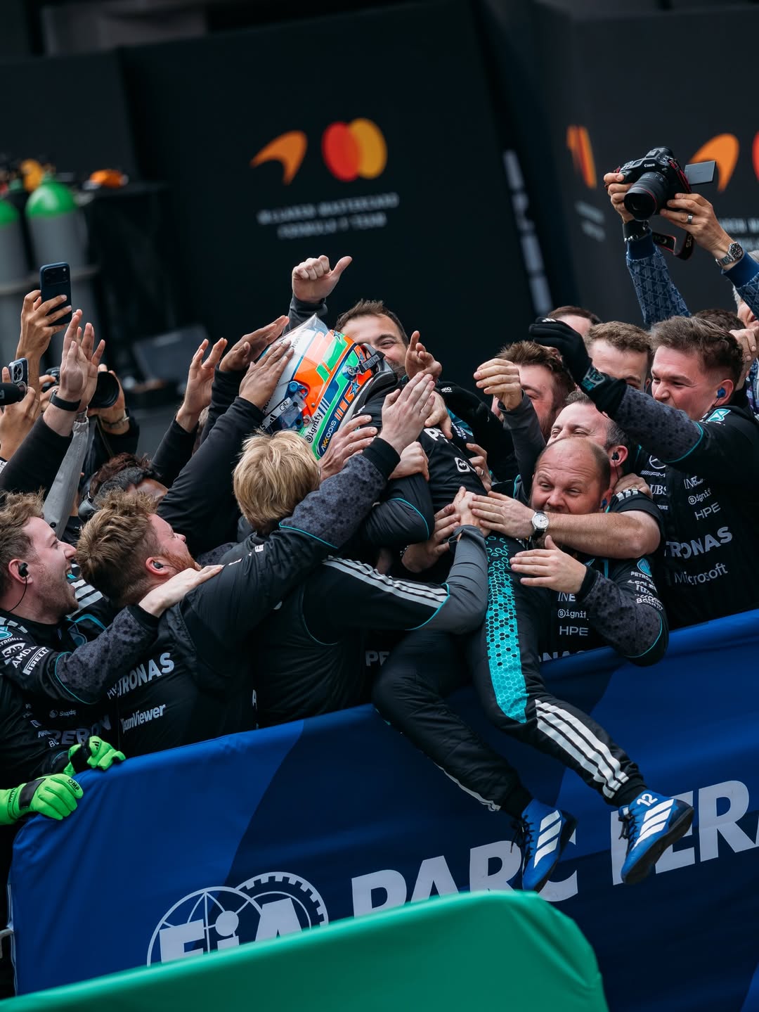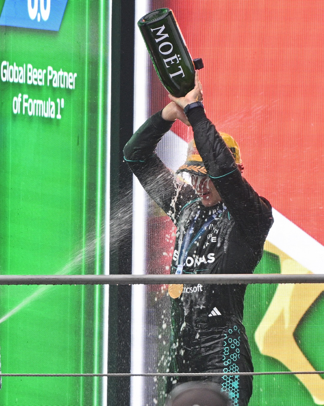 Russell assegurou o segundo lugar e celebrou o momento do companheiro: “A primeira vitória é sempre inesquecível. Estar no pódio com ele e com Hamilton é muito especial”.