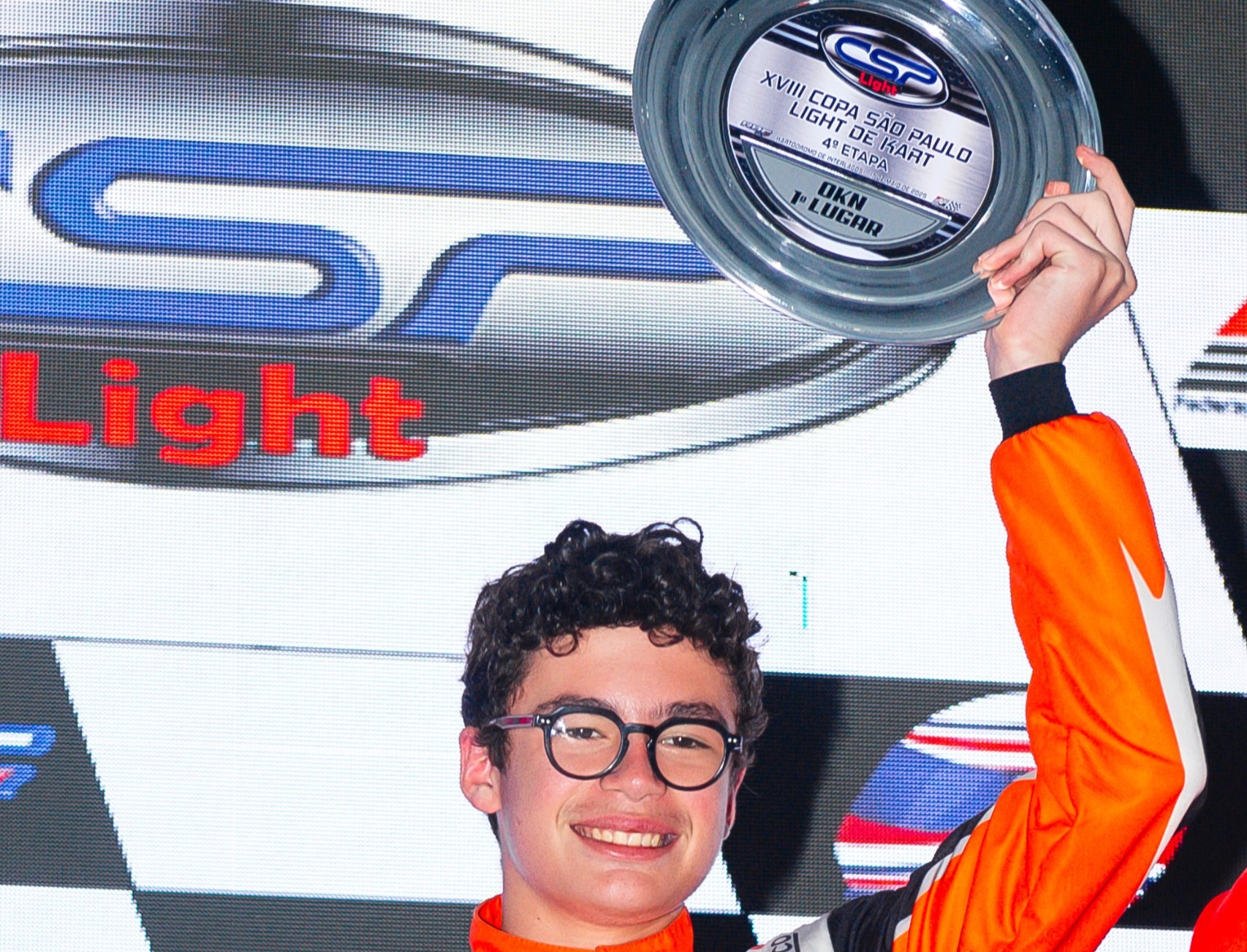 - Bernardo Gentil no topo do Pódio da 4ª Etapa da Copa São Paulo Light de Kart, Categoria OKN – Foto Darside Karts